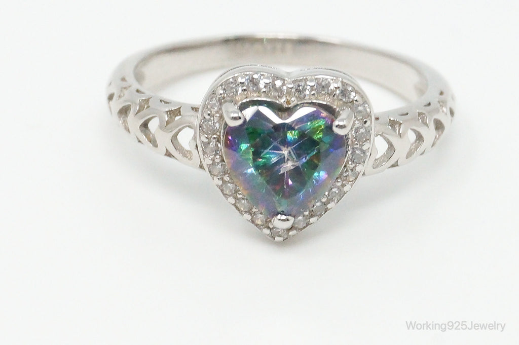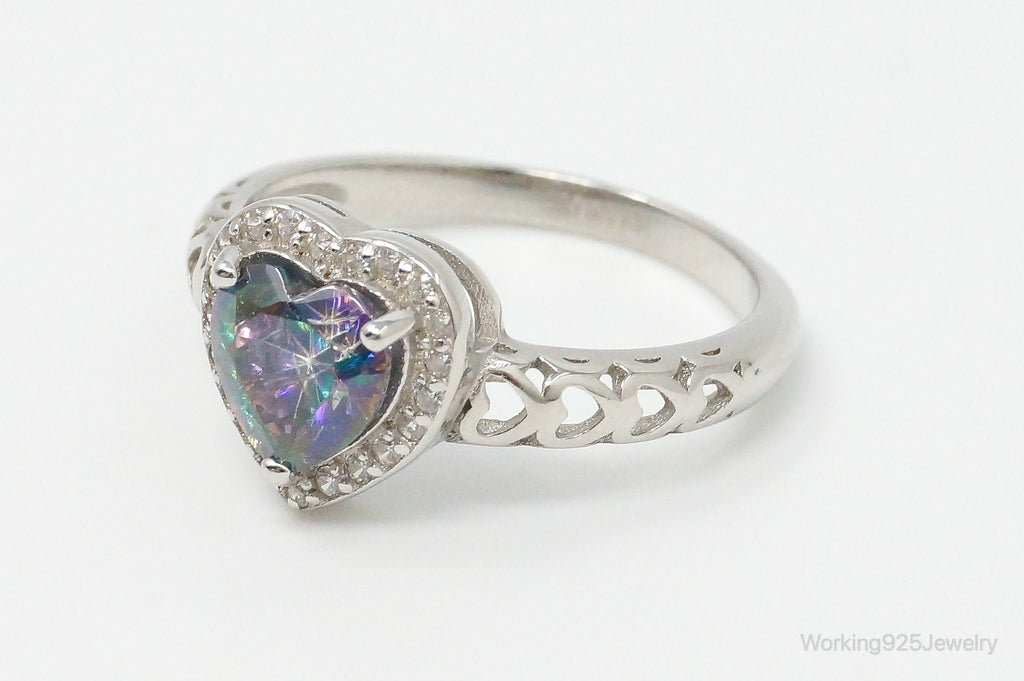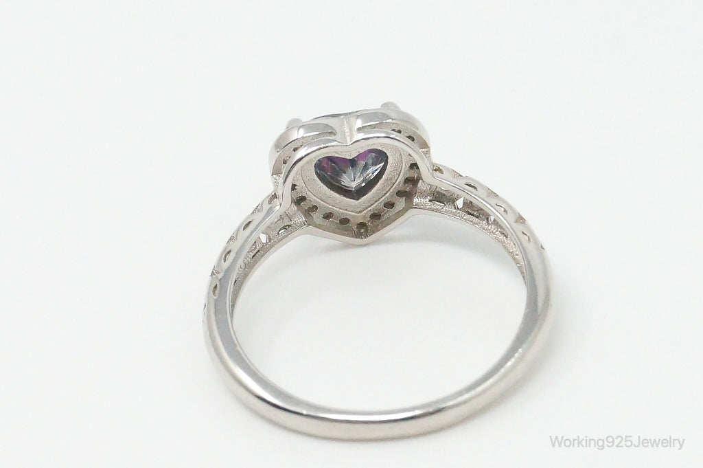Mystic Topaz Heart Cubic Zirconia Sterling Silver Ring - Size 8