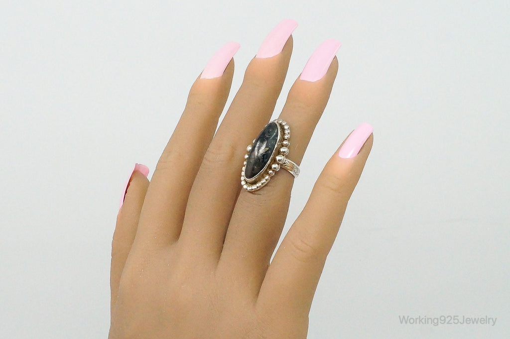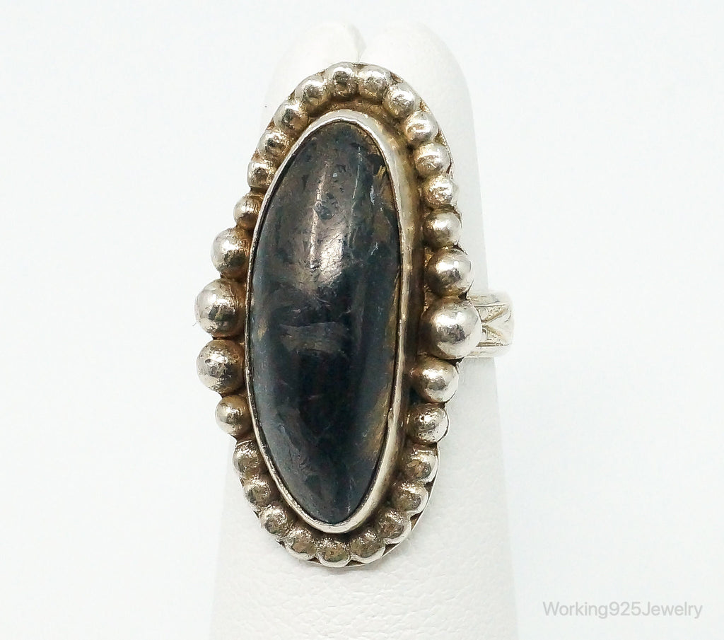 Native American Black Apache Gold Stone FERG Sterling Silver Ring Size 3.25