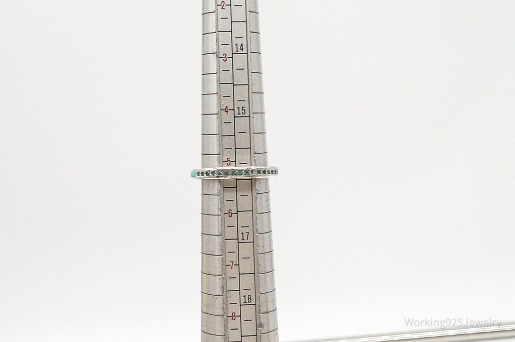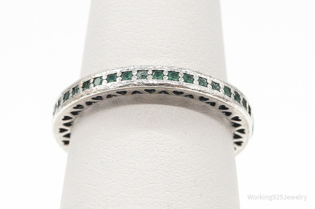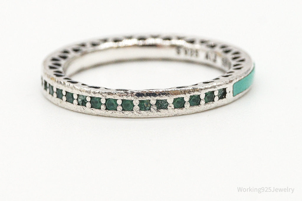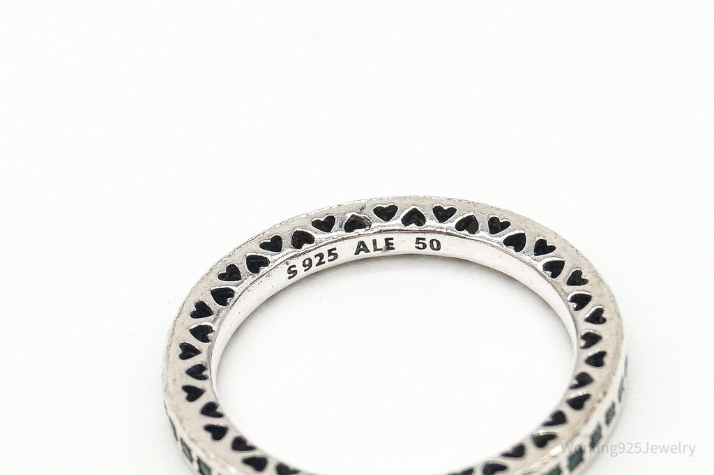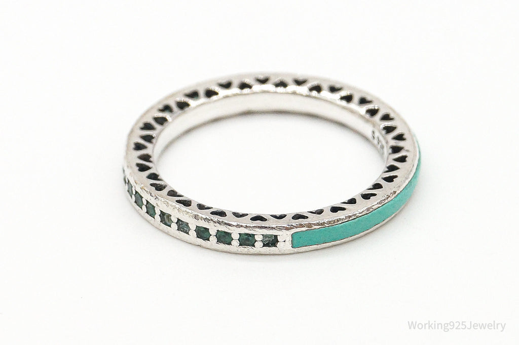 Pandora Green Cubic Zirconia Hearts Enamel Sterling Silver Ring - Size 5.25