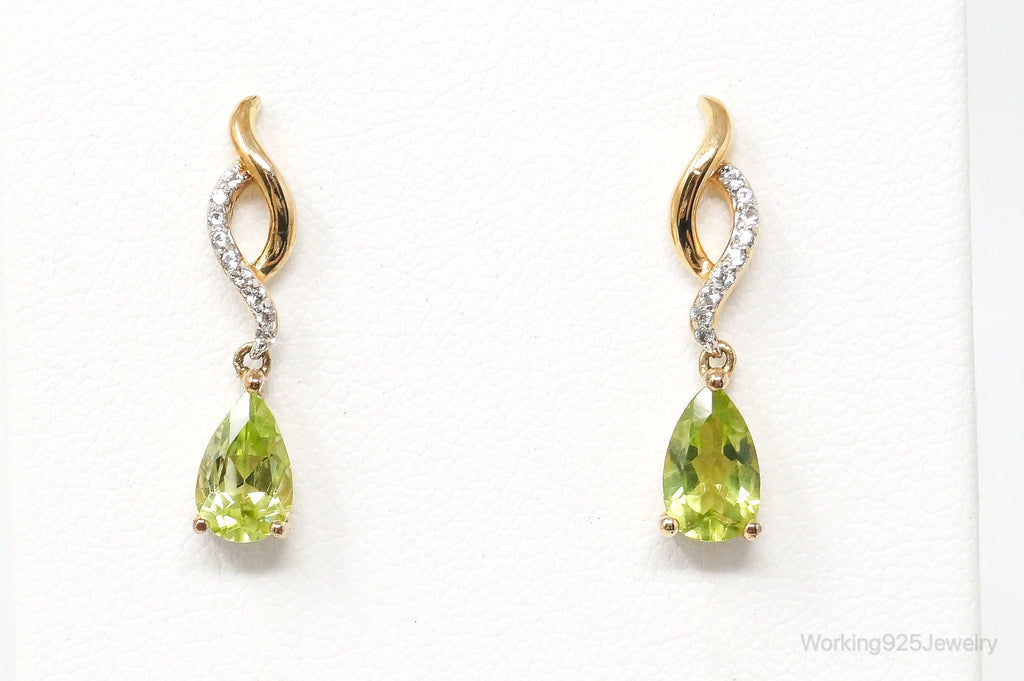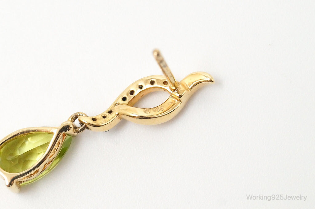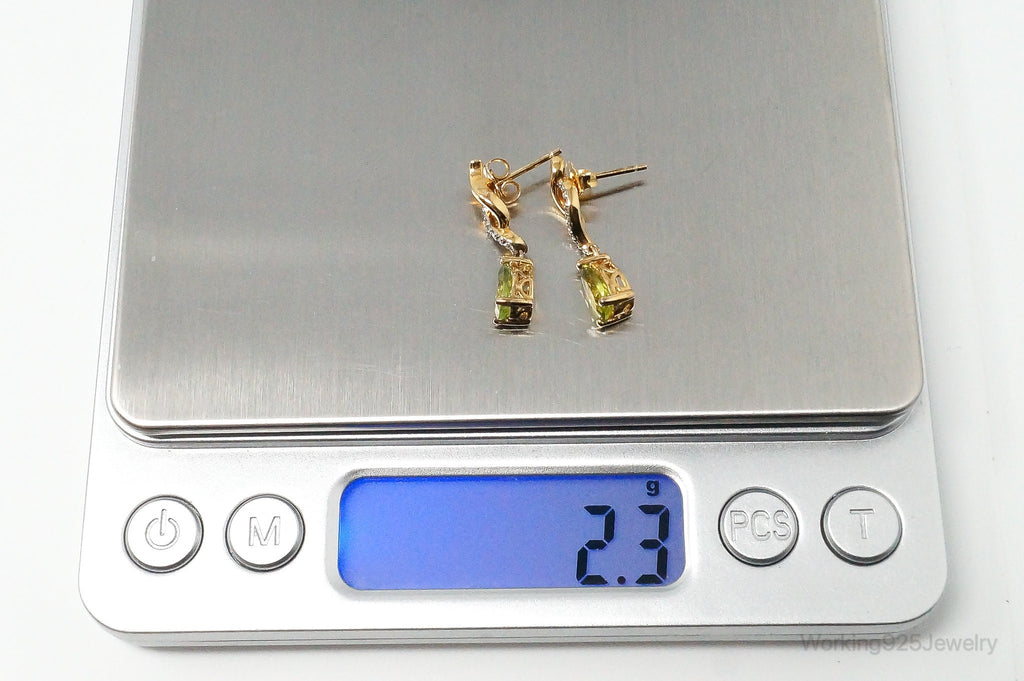 Peridot Cubic Zirconia Gold Vermeil Sterling Silver Earrings