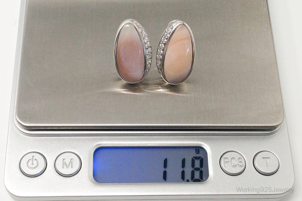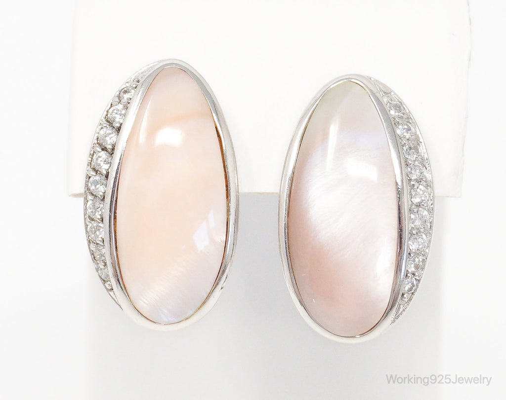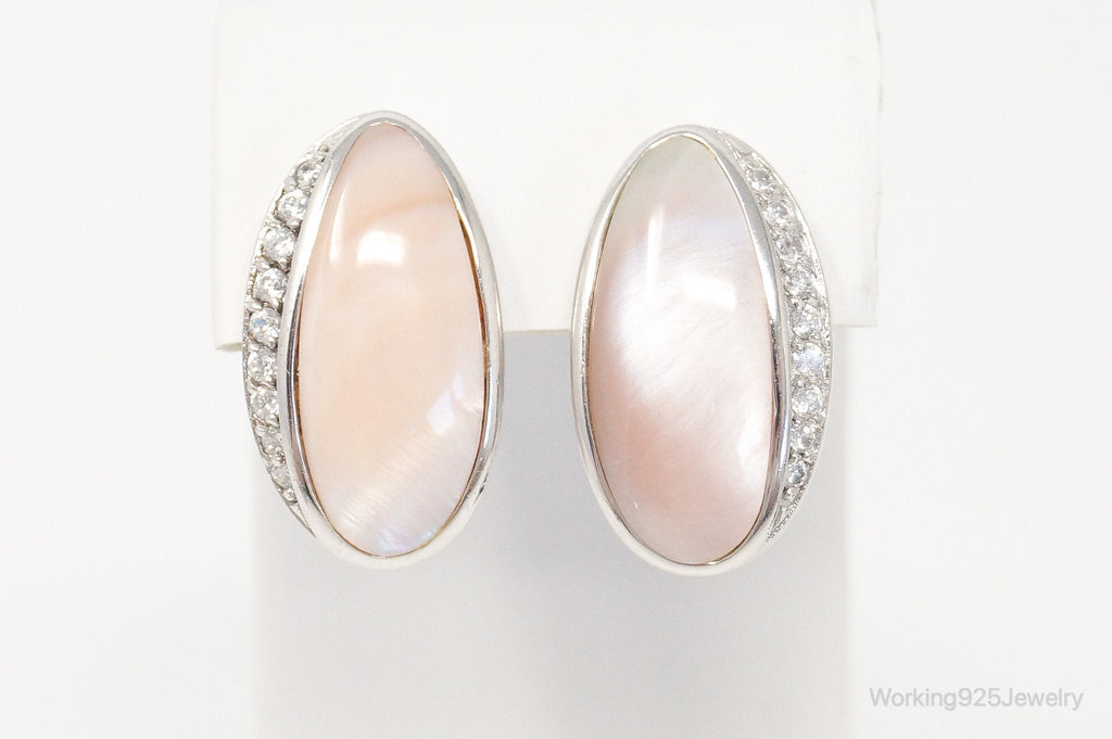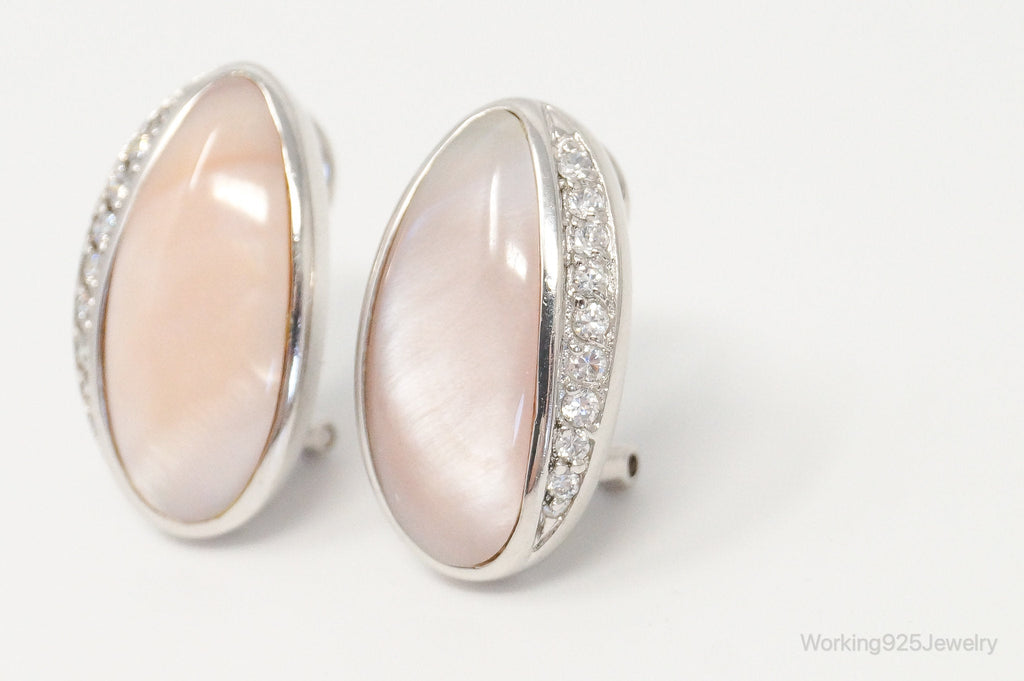 Pink Mother of Pearl Cubic Zirconia Sterling Silver Earrings