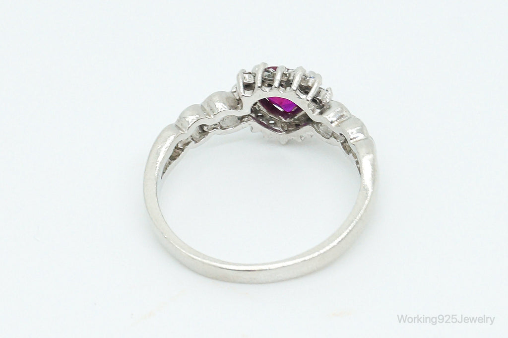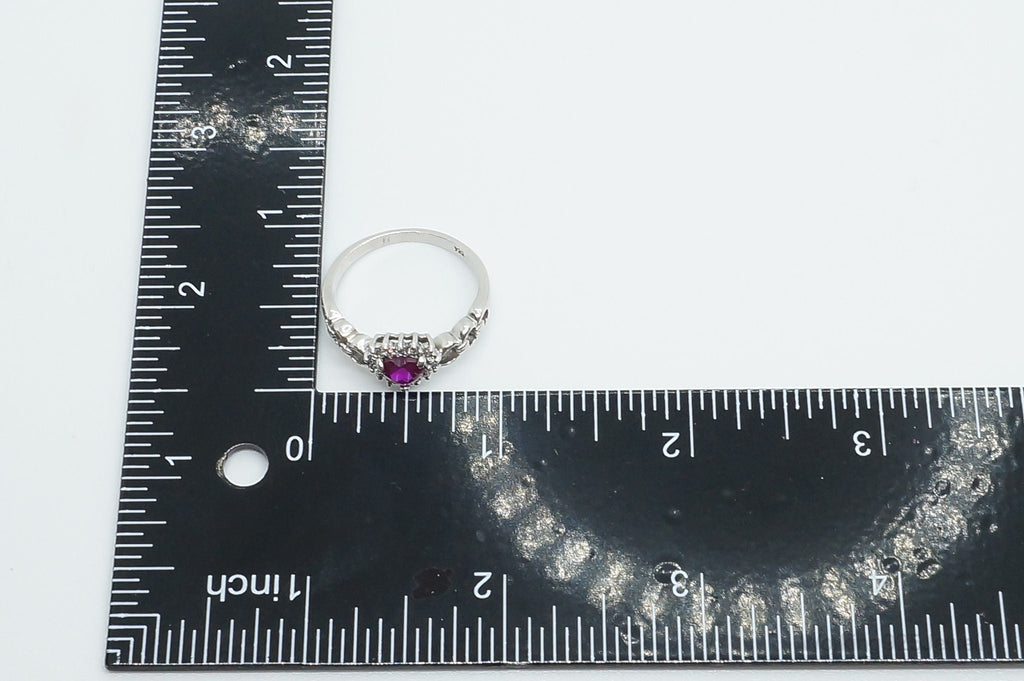 Pink Topaz Cubic Zirconia Heart Sterling Silver Ring - SZ 10