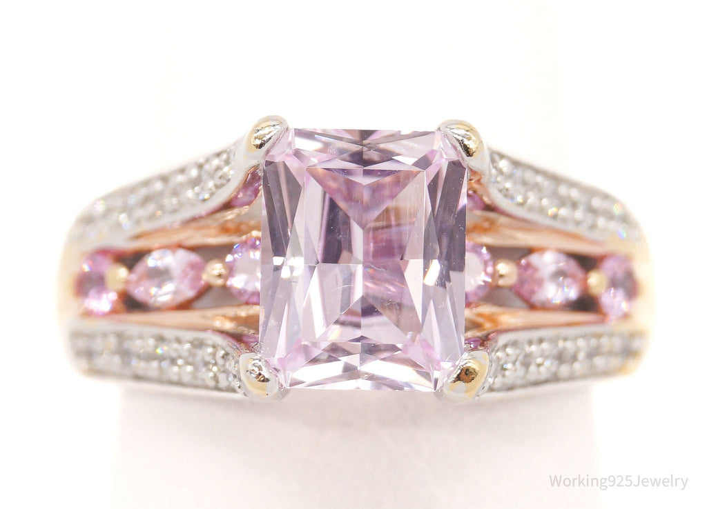 Pink Topaz Cubic Zirconia Rose Gold Vermeil Sterling Silver Ring - Size 7.75