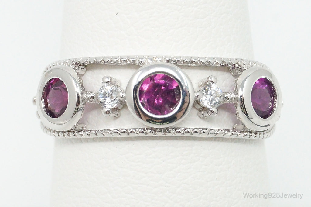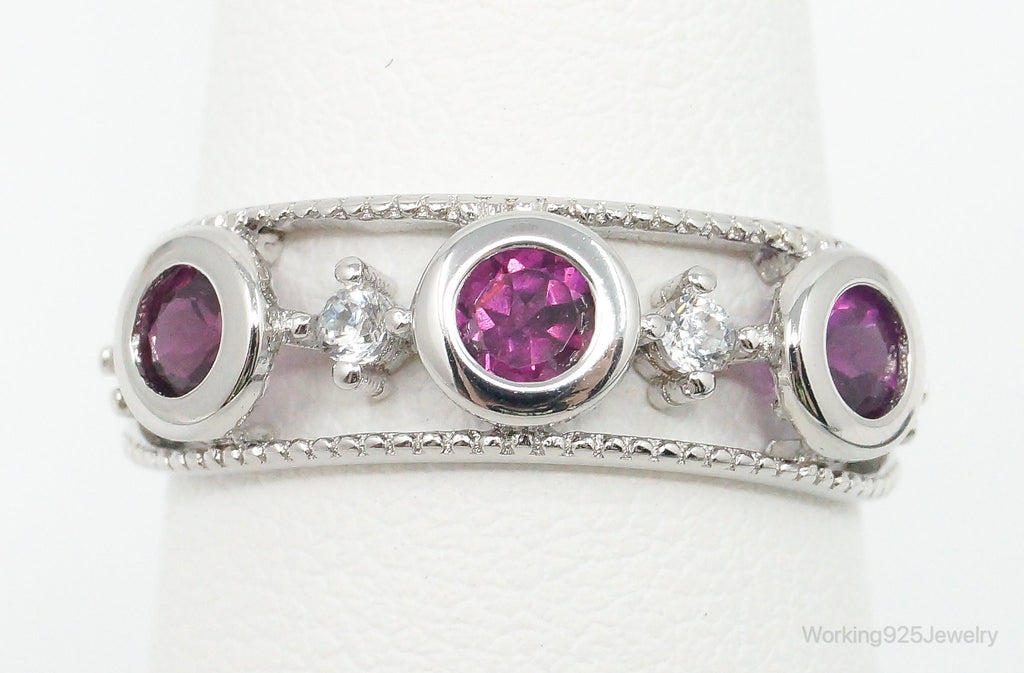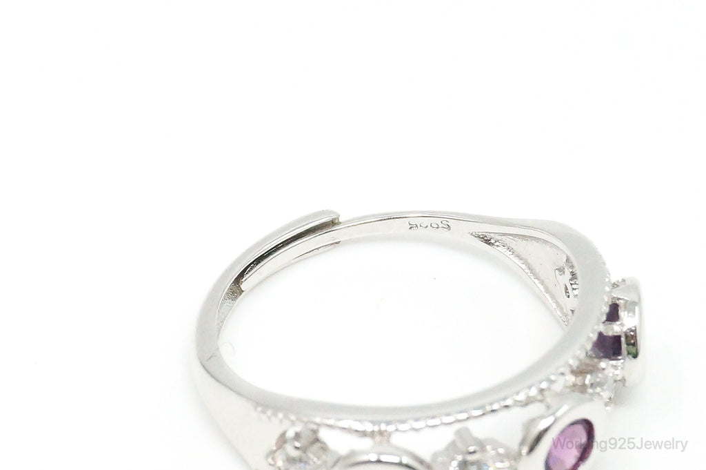 Pink Topaz Cubic Zirconia Sterling Silver Ring - Size 7.5 Adjustable
