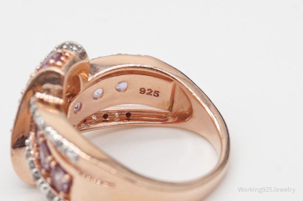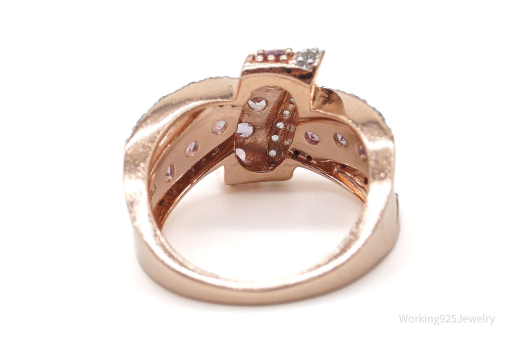Pink Tourmaline White Zircon 18K Rose Gold Over Sterling Silver Ring SZ 6.75