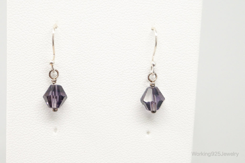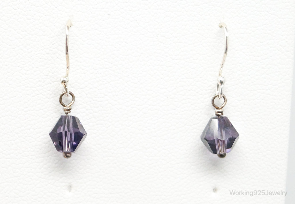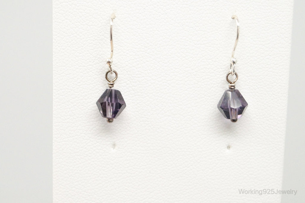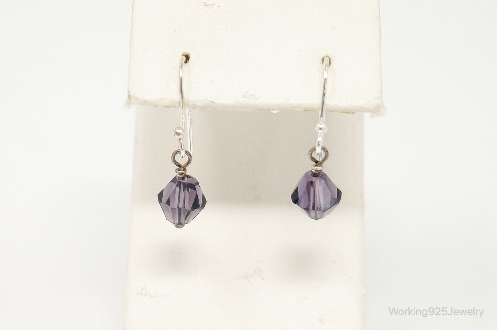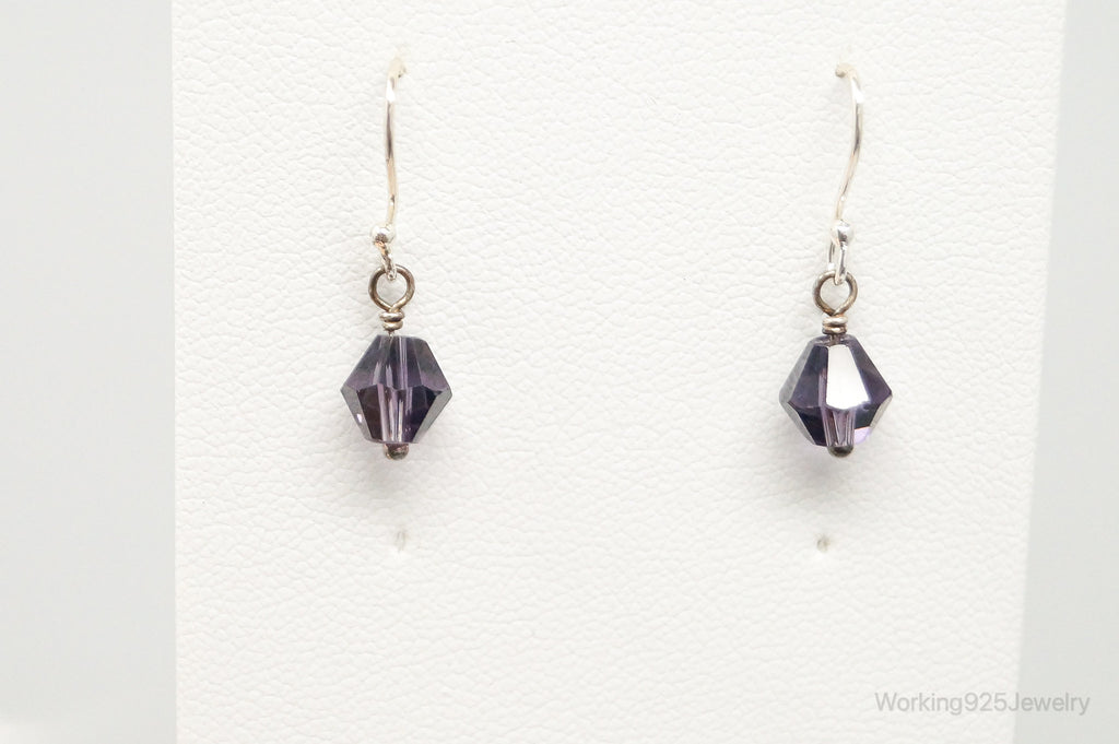Purple Crystal Bead Modern Sterling Silver Earrings