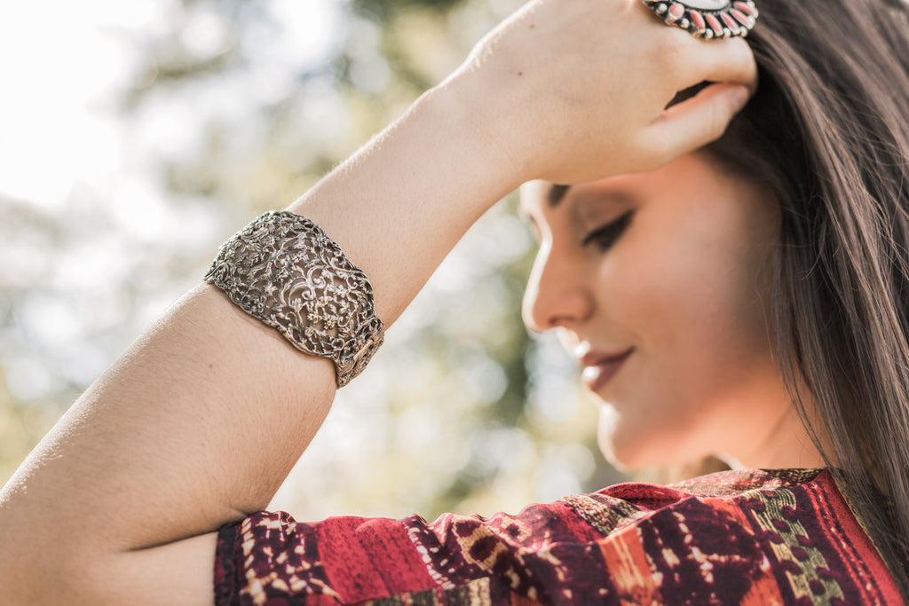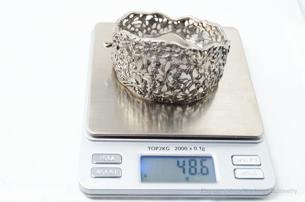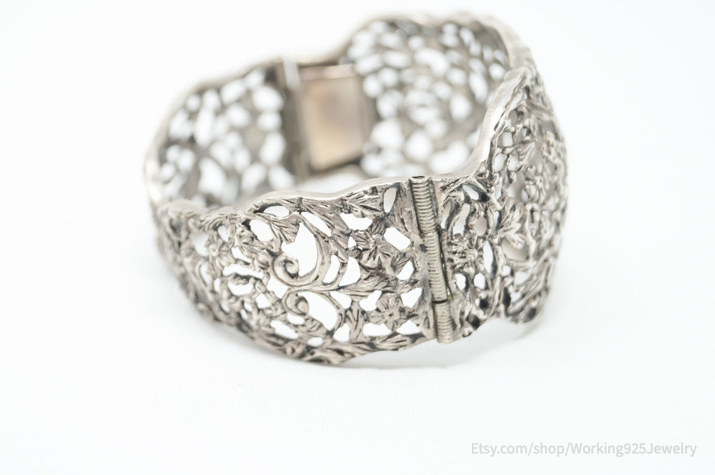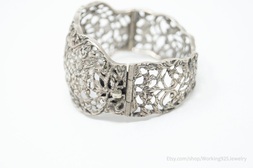 RARE Antique Art Nouveau Floral Cut Out 800 Silver Panel Bracelet