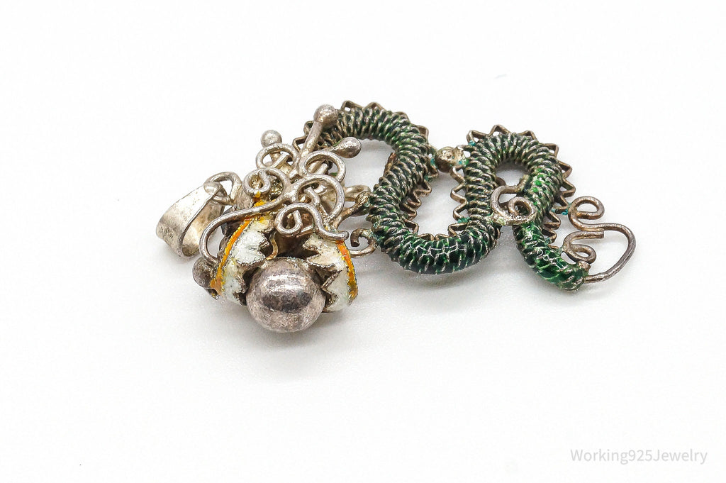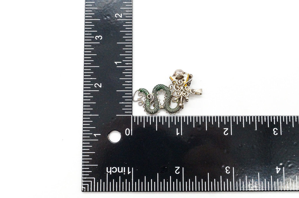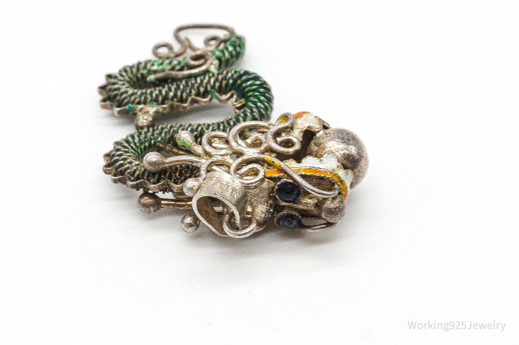 RARE Antique Chinese Export Silver Enamel Mesh Dragon Pendant