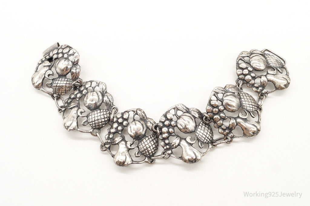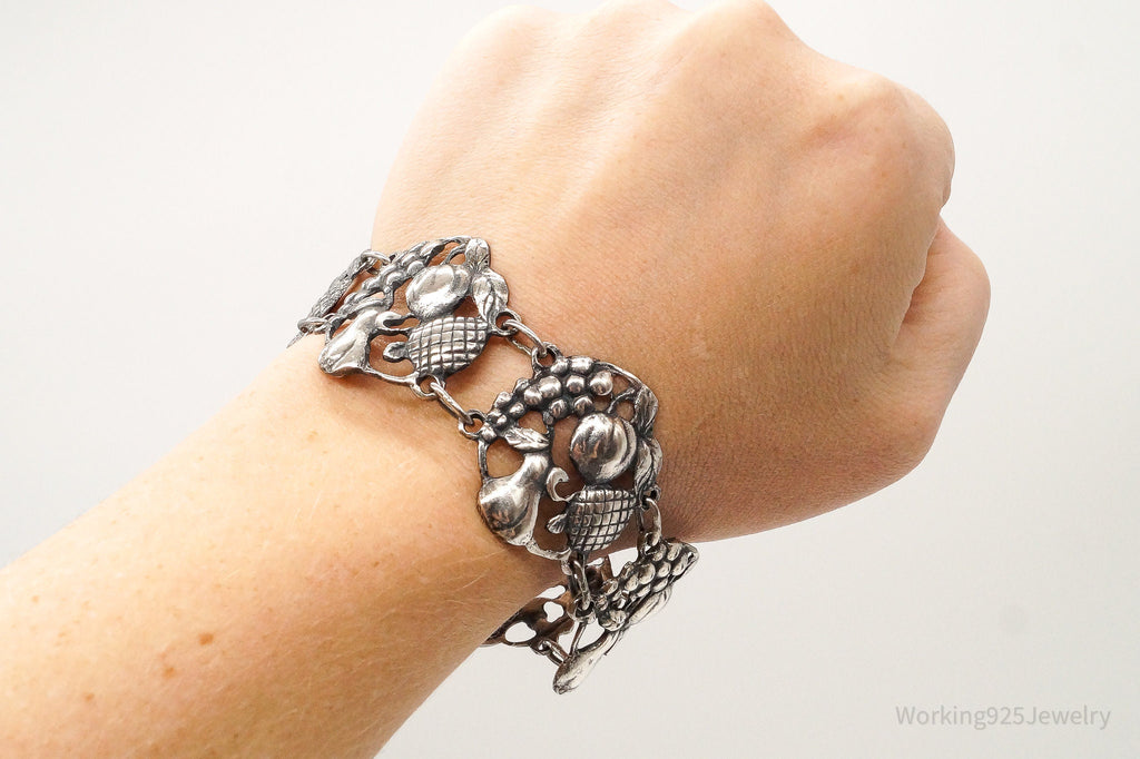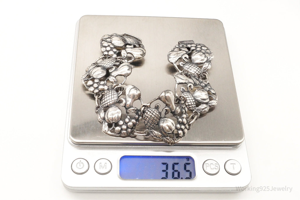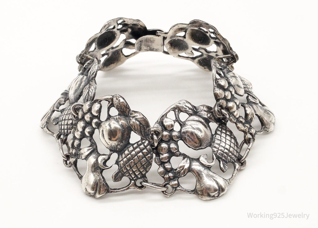 Rare Antique Fruit Harvest Repousse Sterling Silver Bracelet