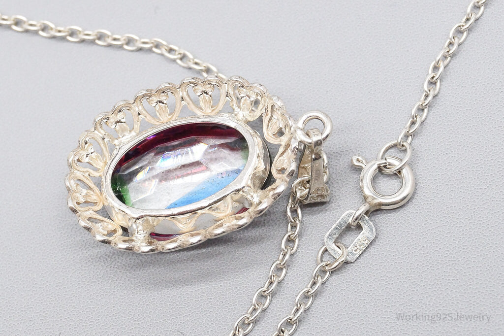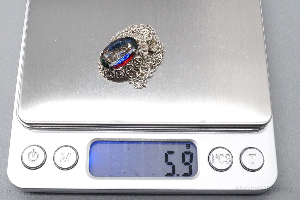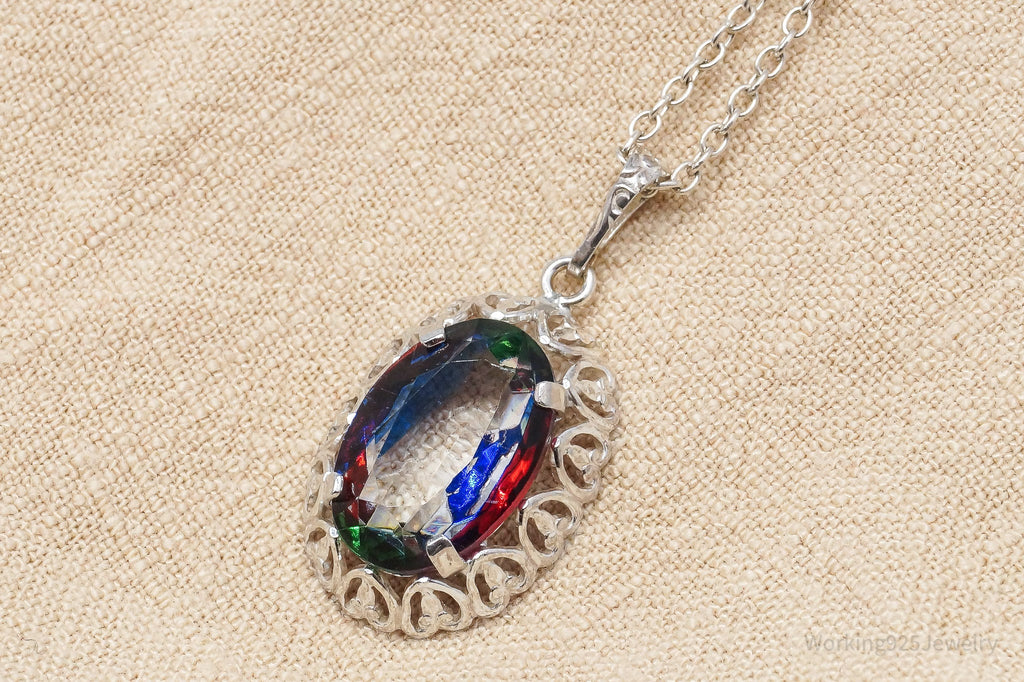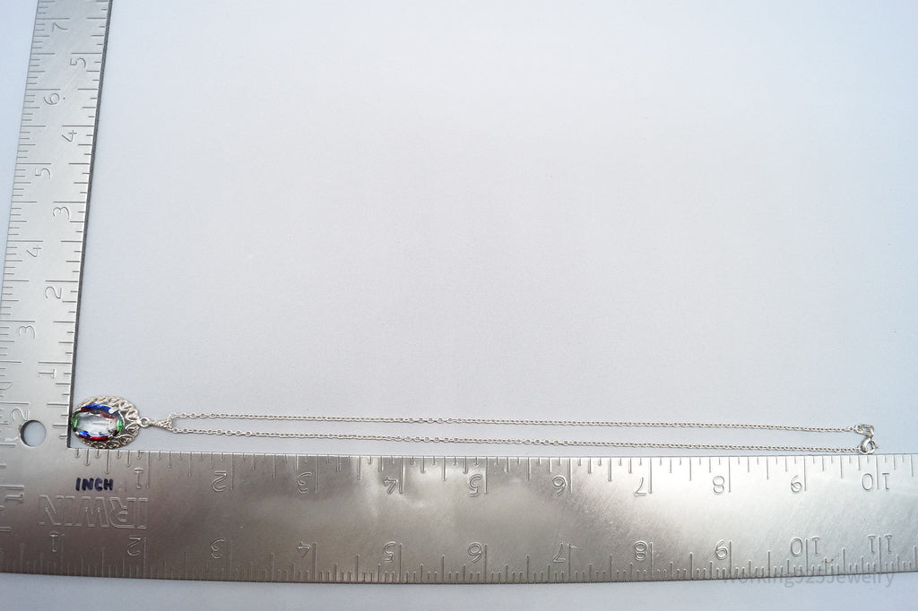 Rare Antique German Iris Glass 835 Silver Chain Necklace 18"