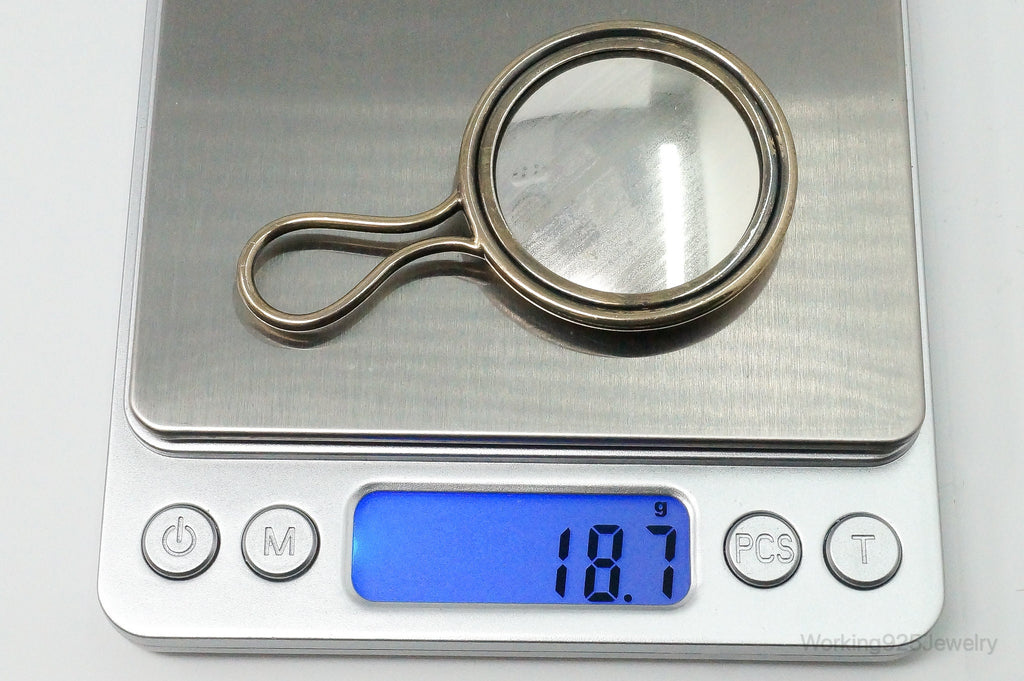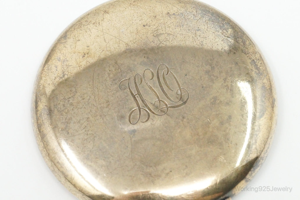 RARE Antique Initials Engraved Gold Wash Sterling Silver Mirror Collectable