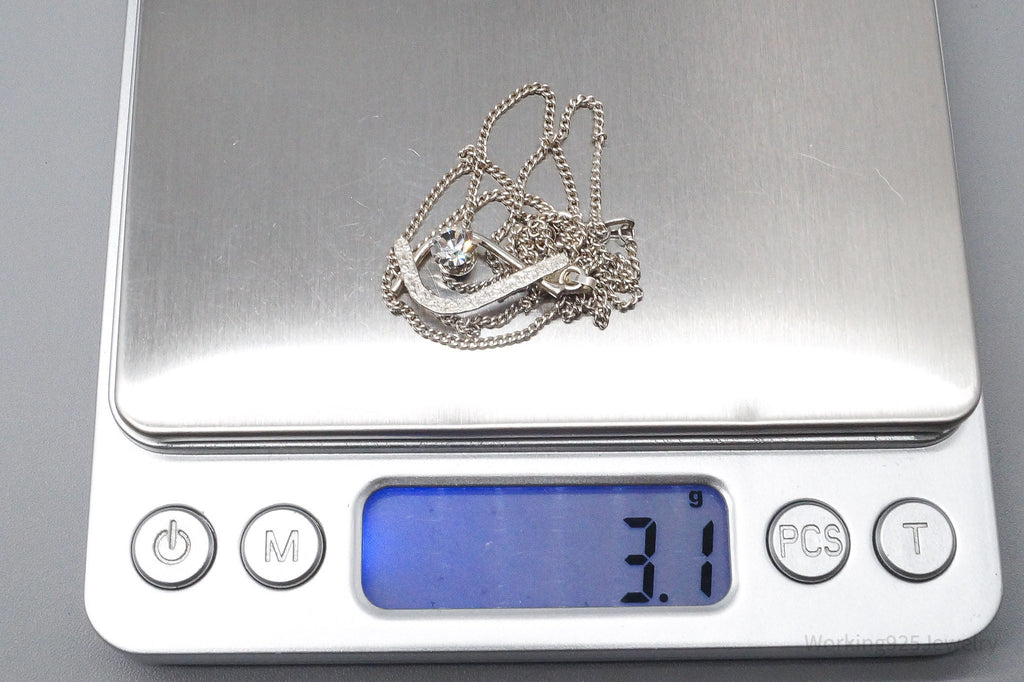 Rare Antique Modernist European Rhinestone 835 Silver Chain Necklace 17"'
