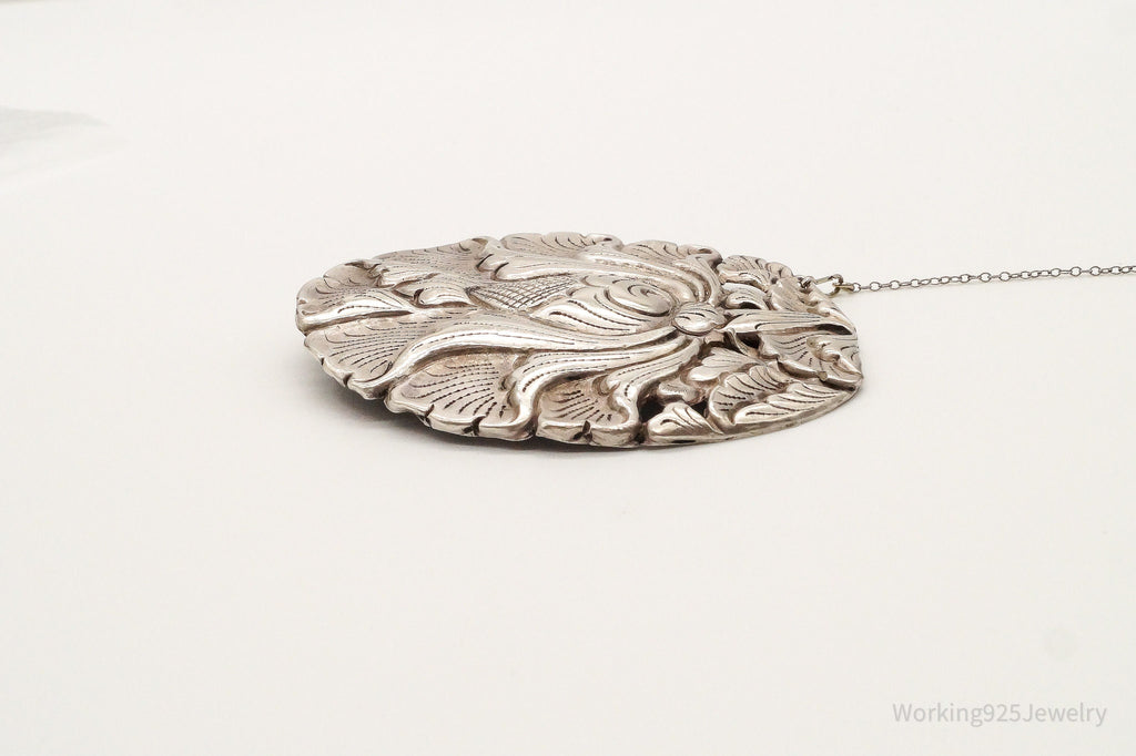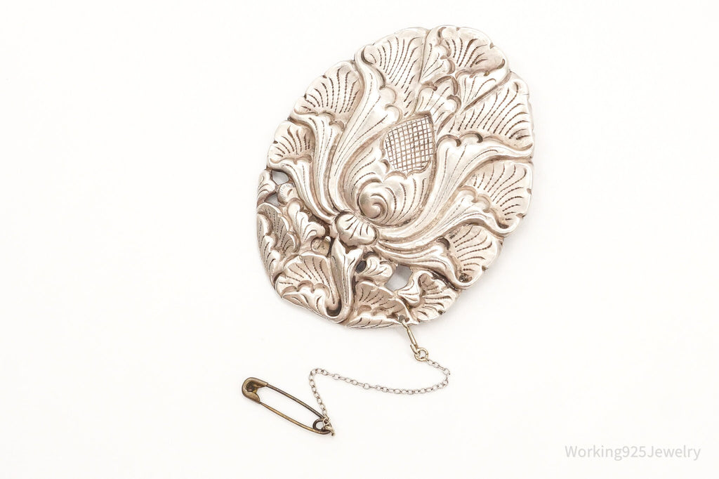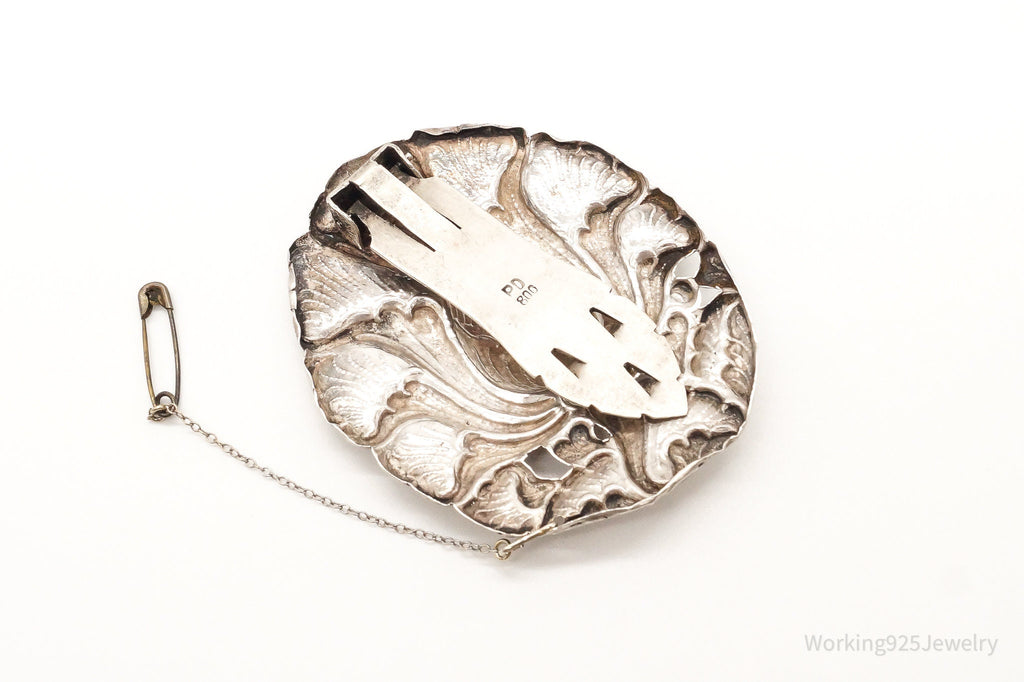 RARE Antique Signed PD Floral Repousse 800 Silver Clip