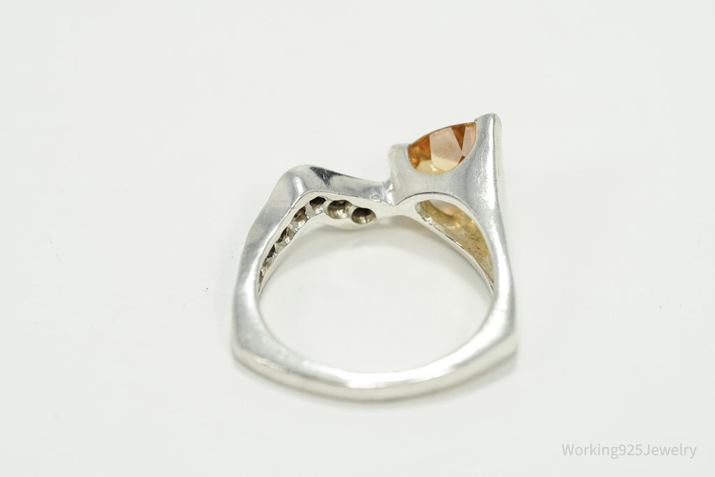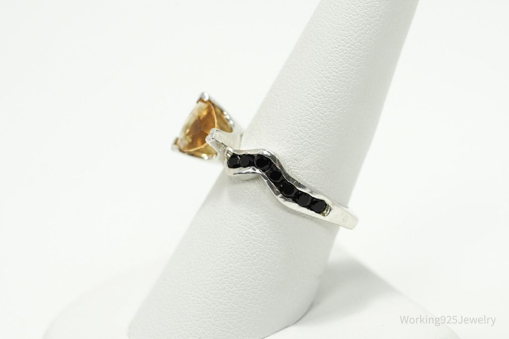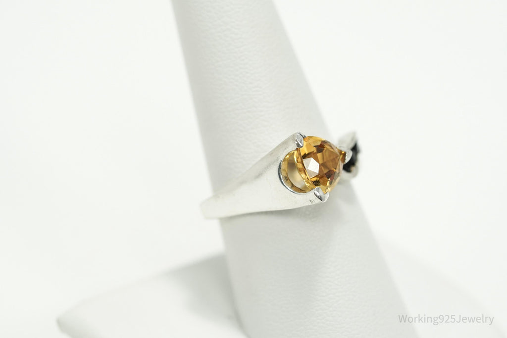 Rare Designer Donald Pekarek Citrine & Black Spinel Sterling Silver Ring - Size 8