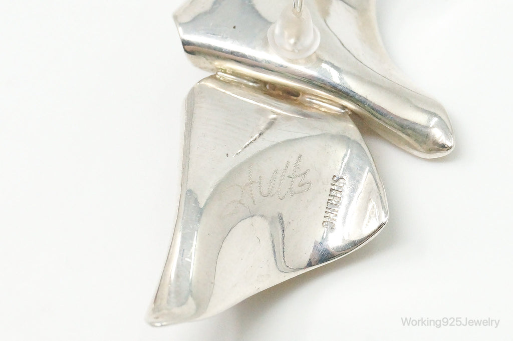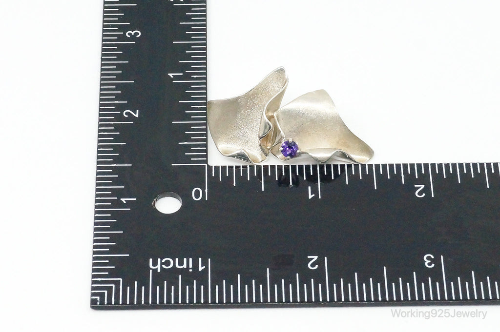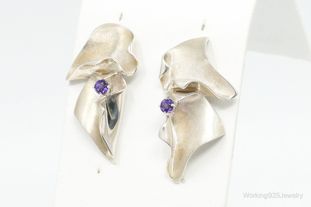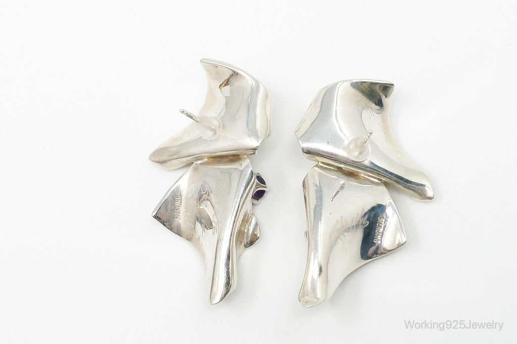 RARE Large Modernist HOLLY STULTZ Amethyst Sterling Silver Earrings