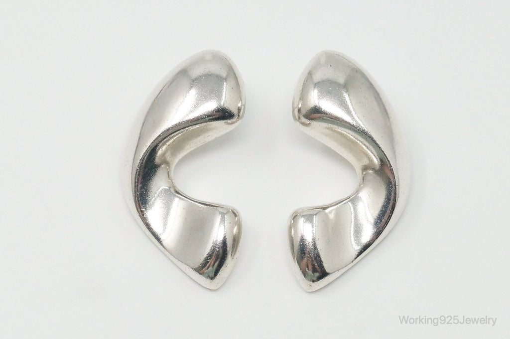 Rare Large Vintage Modernist Inger K. Sterling Silver Earrings