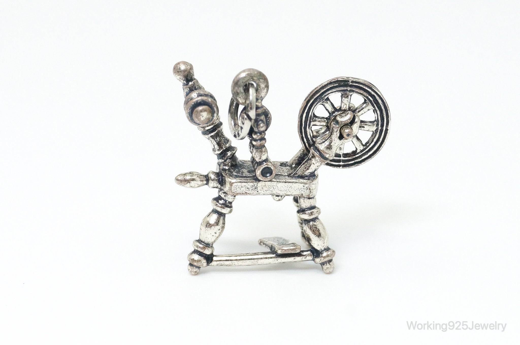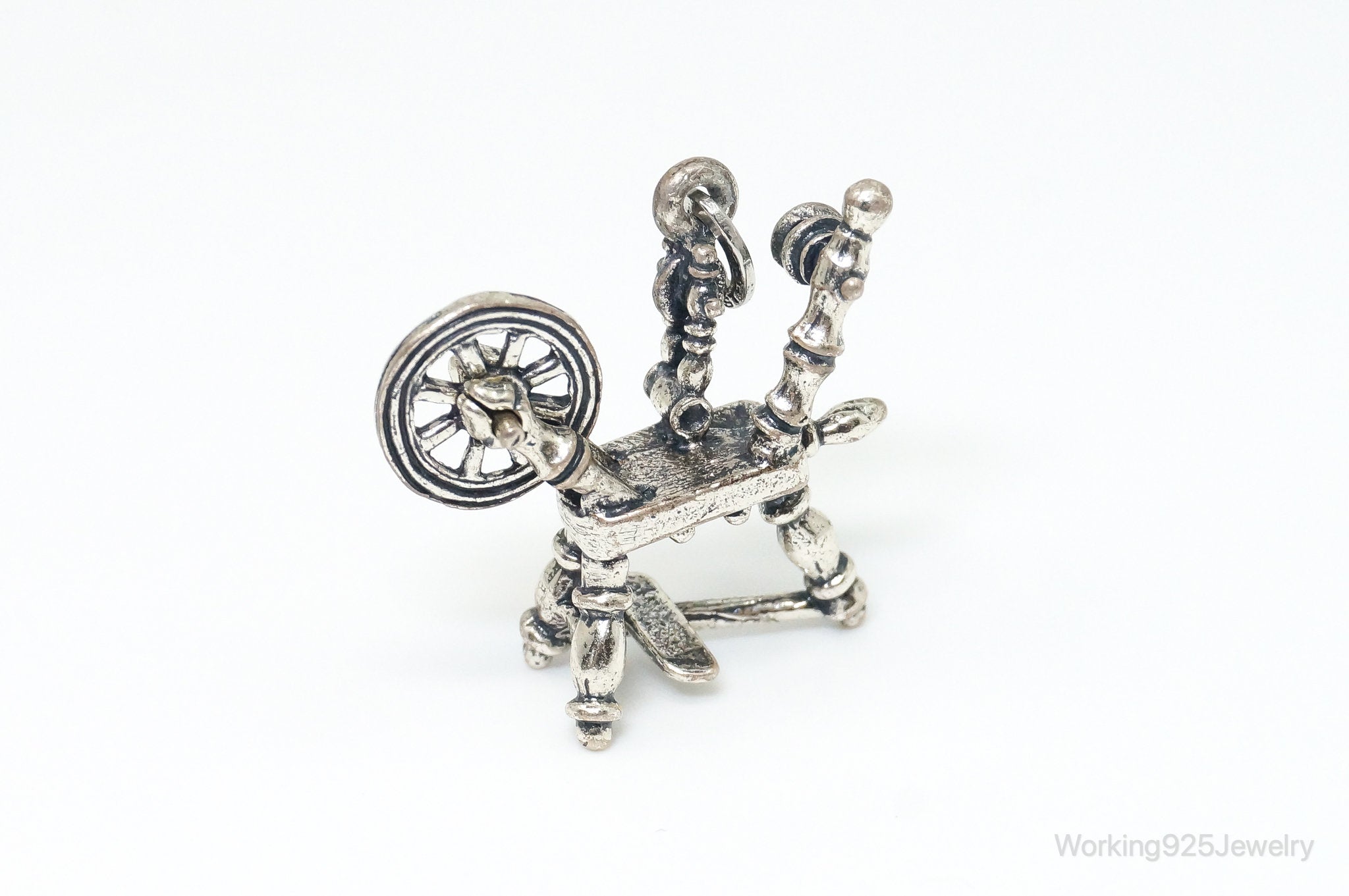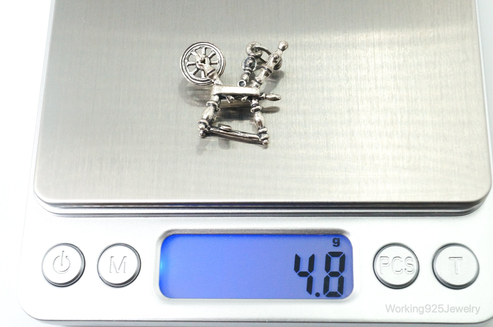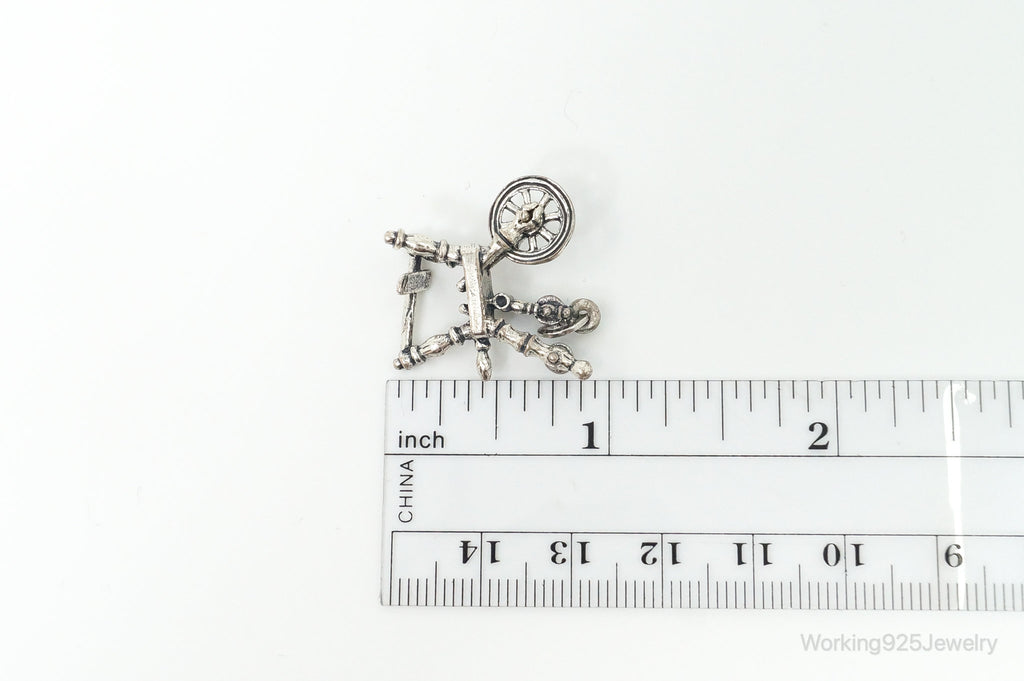 Rare Large VTG ATQ Beau Spinning Wheel Sterling Silver Charm Pendant