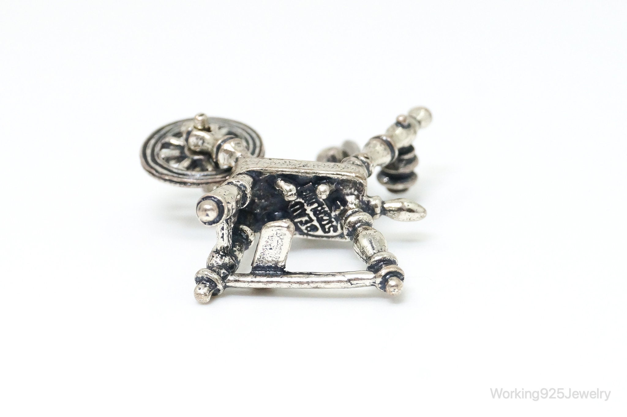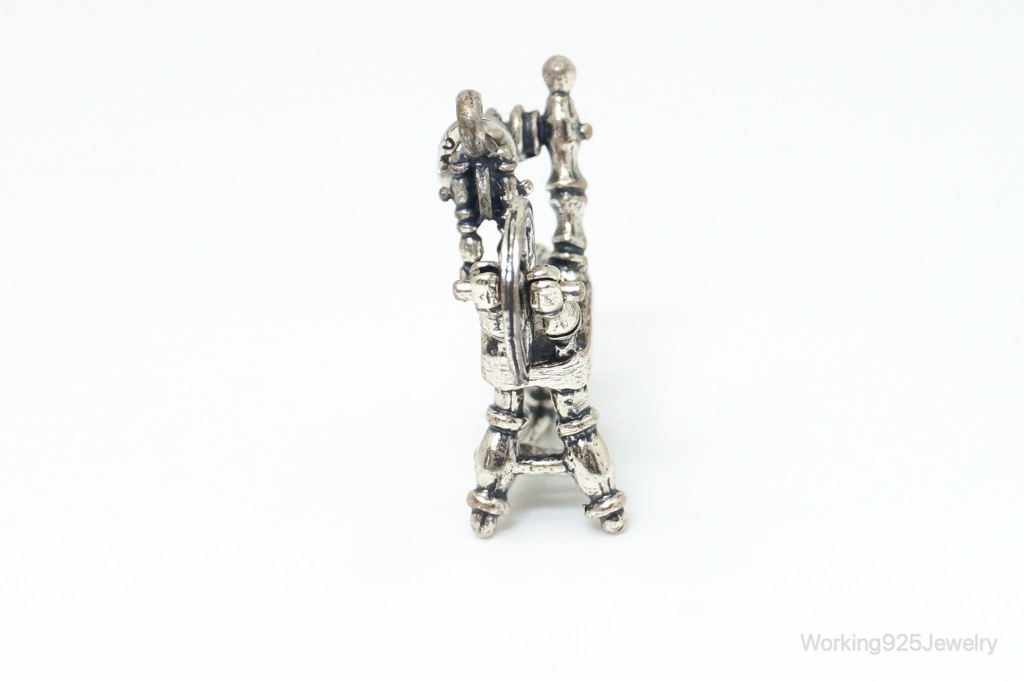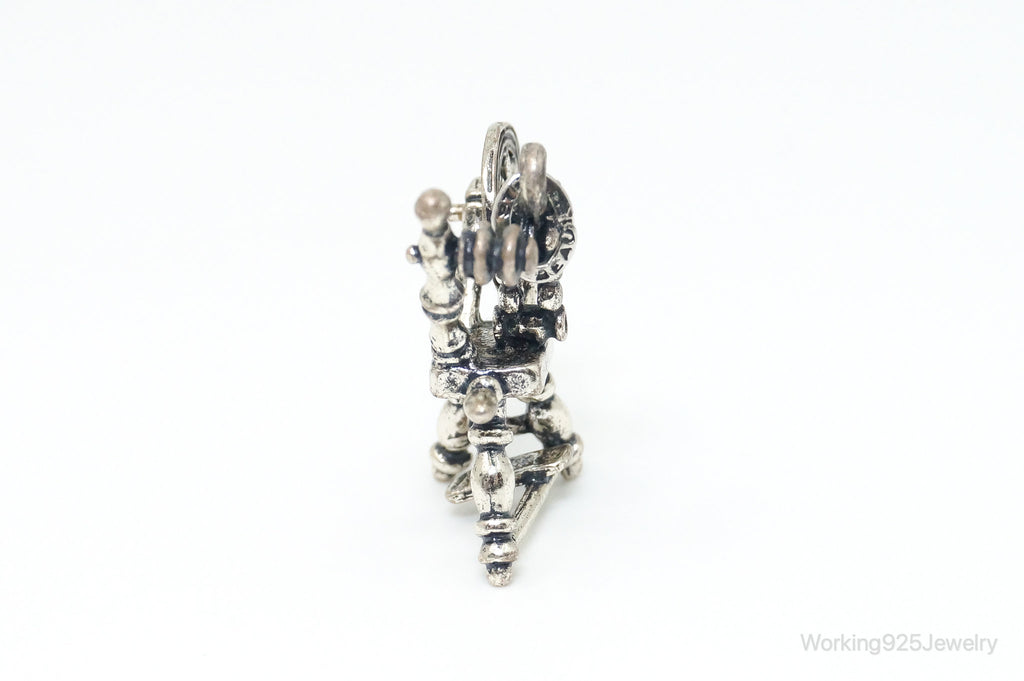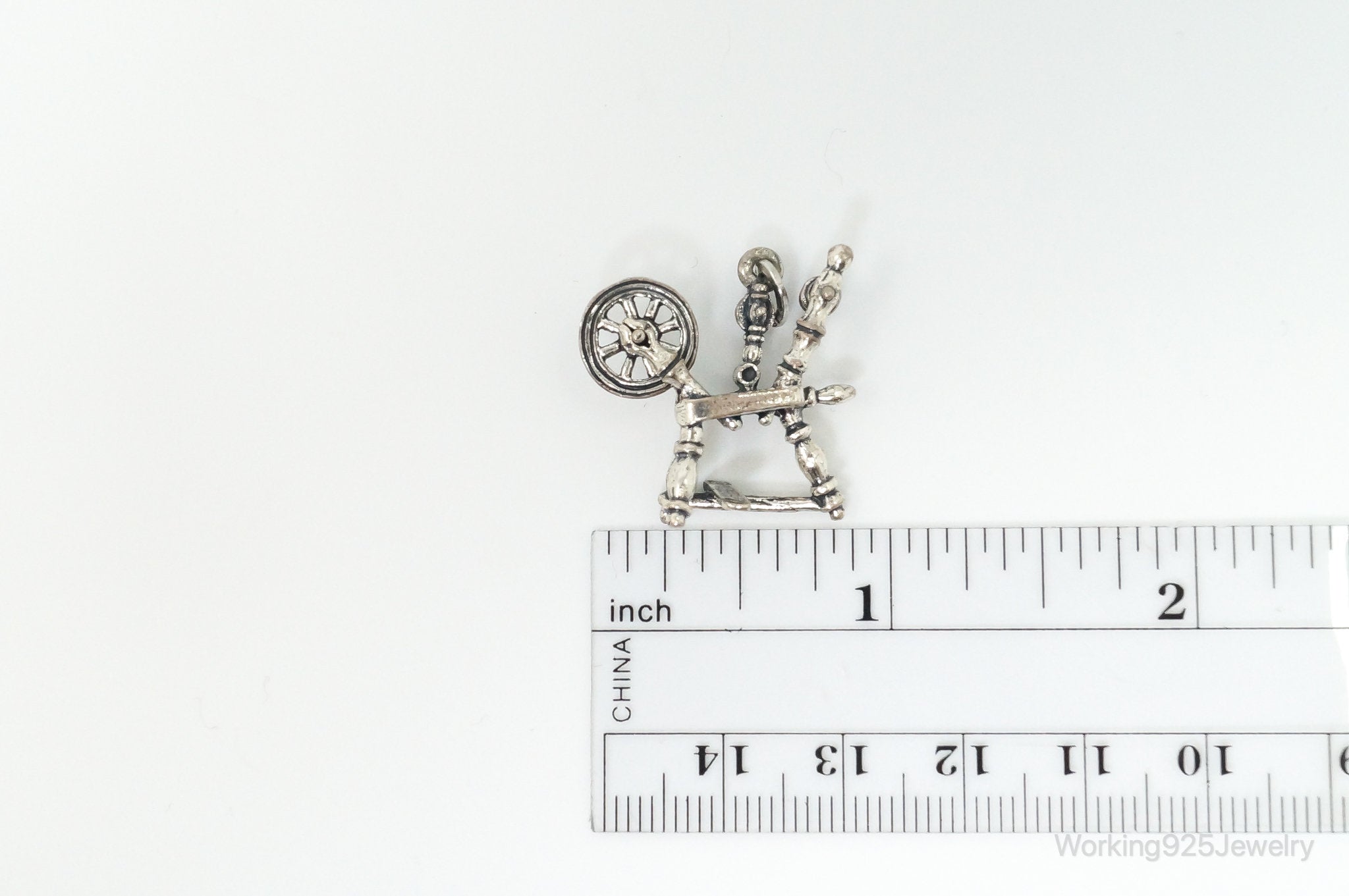 Rare Large VTG ATQ Beau Spinning Wheel Sterling Silver Charm Pendant