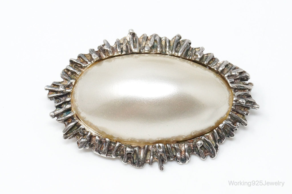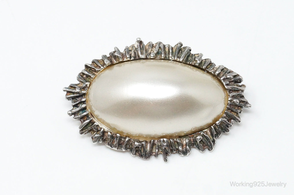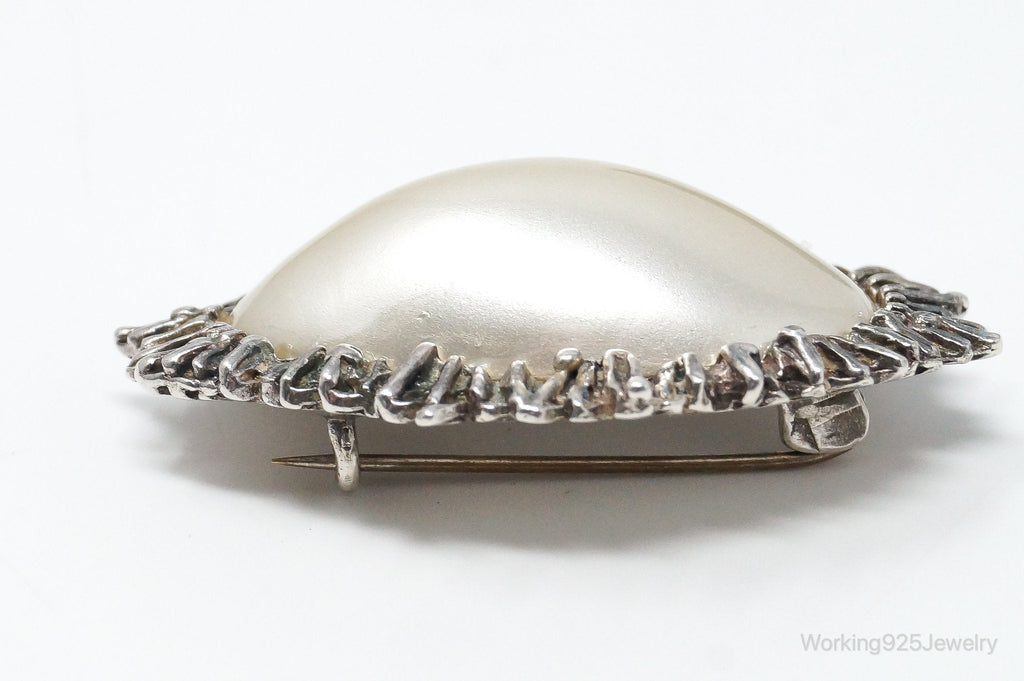 Rare Vintage Astrid Holthe Pearl Sterling Silver Brooch Pin