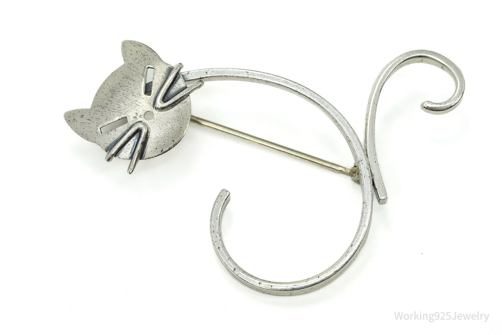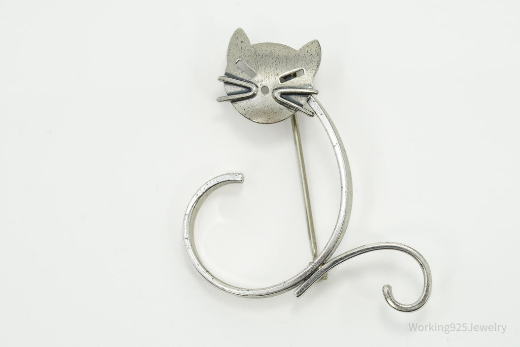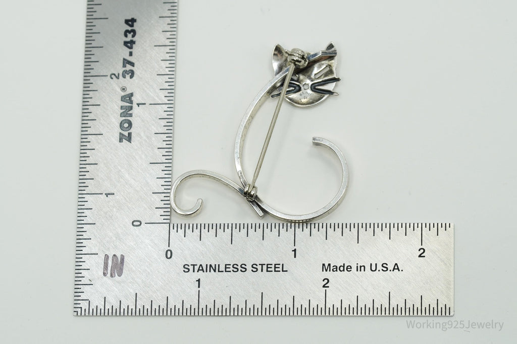Rare Vintage BEAU Cat Kitten Sterling Silver Brooch Pin