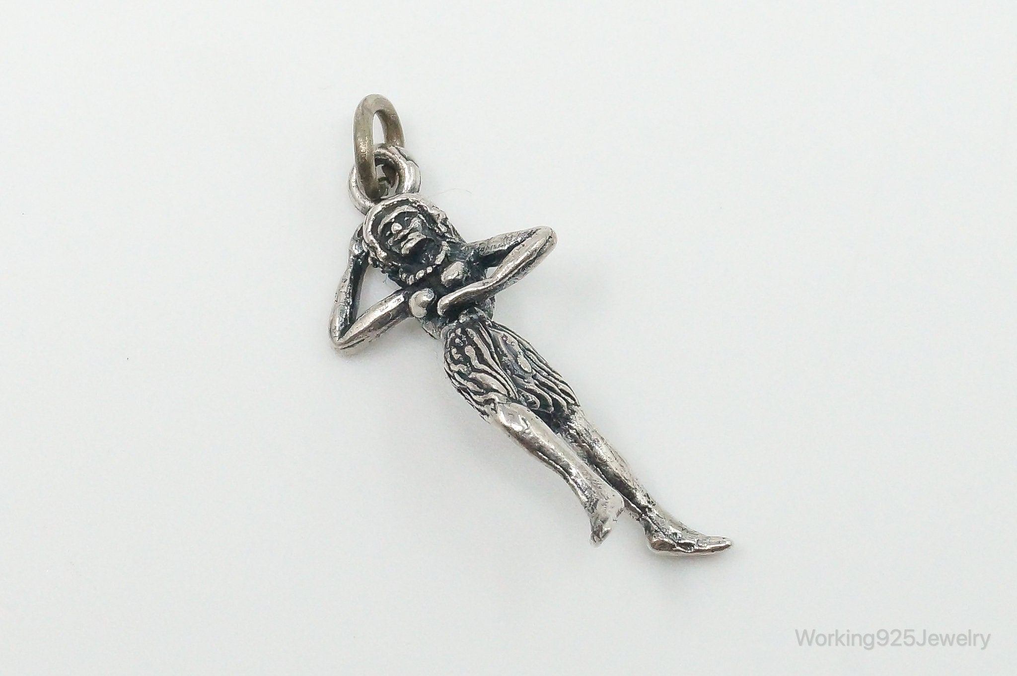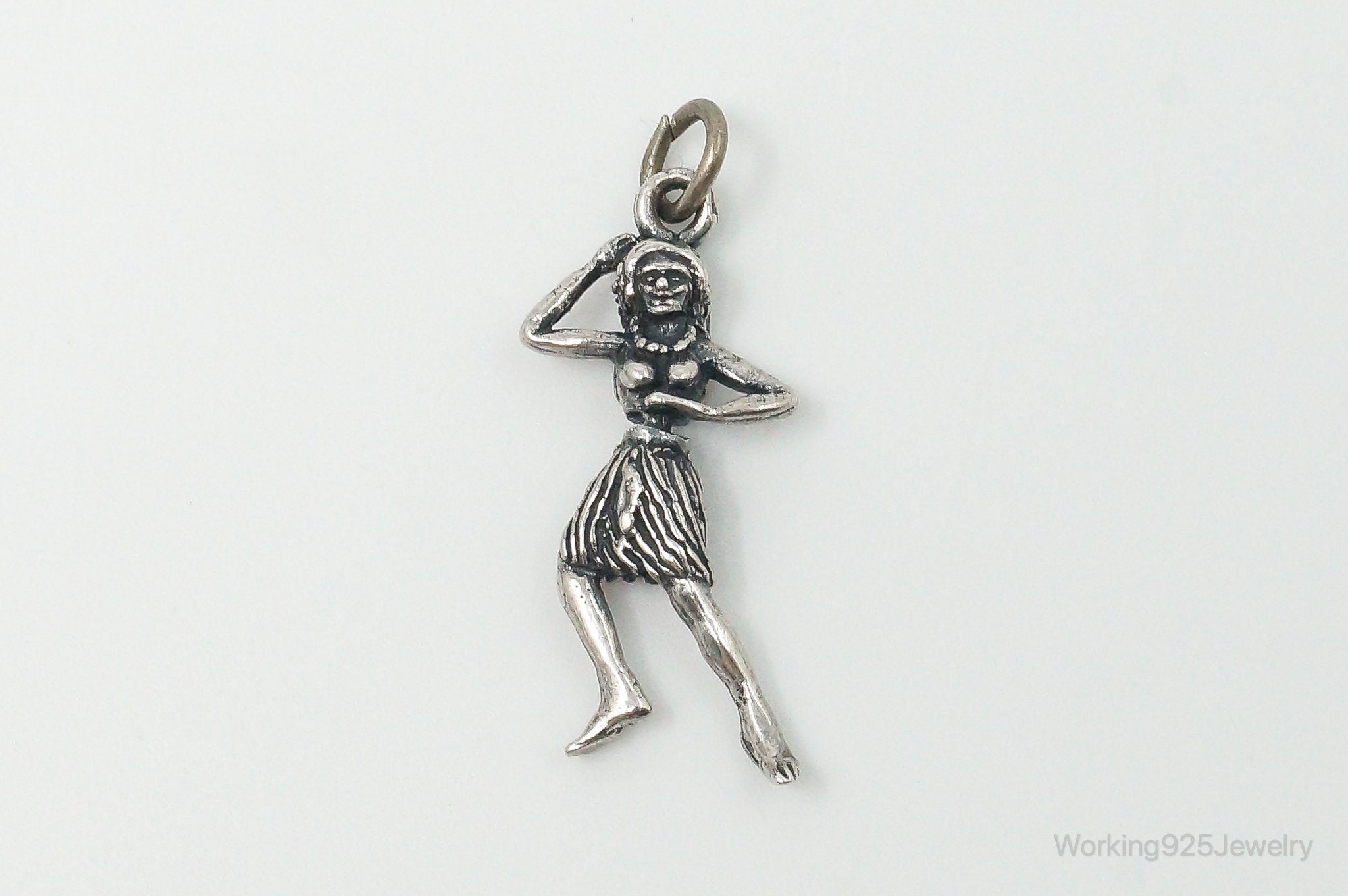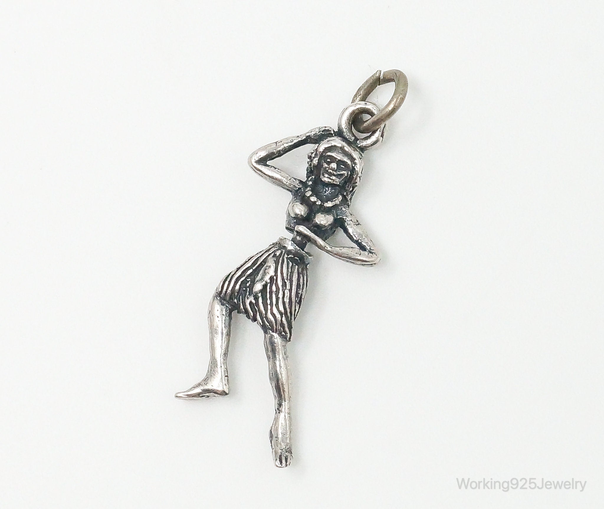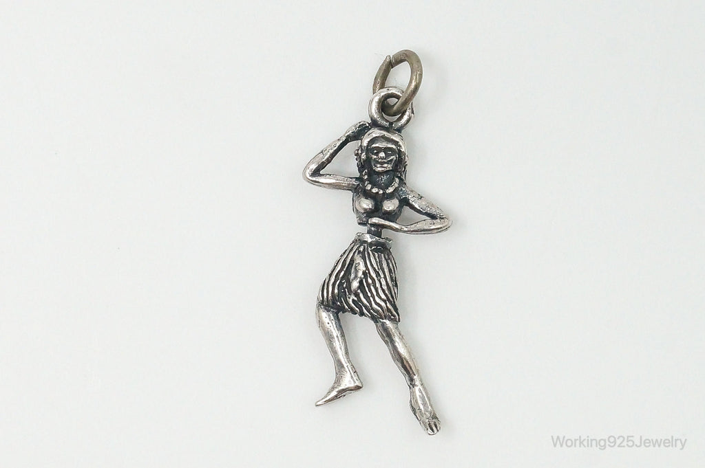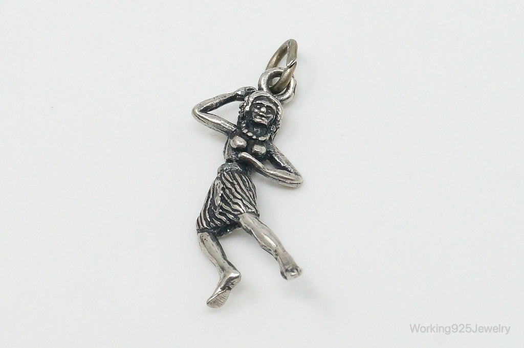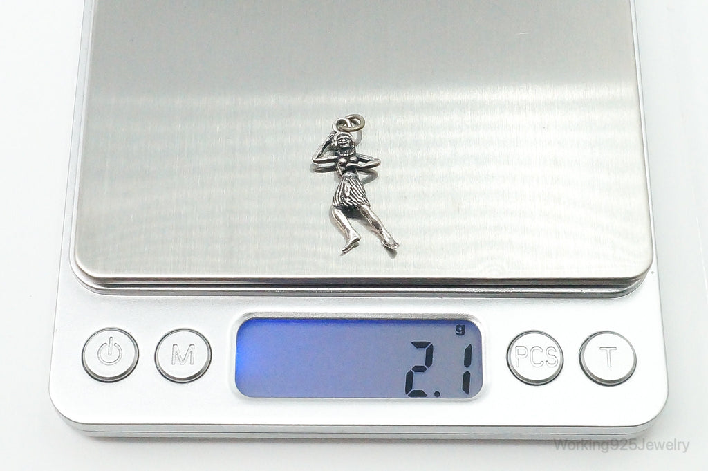 Rare Vintage Hula Dancing Woman Moving Sterling Silver Charm