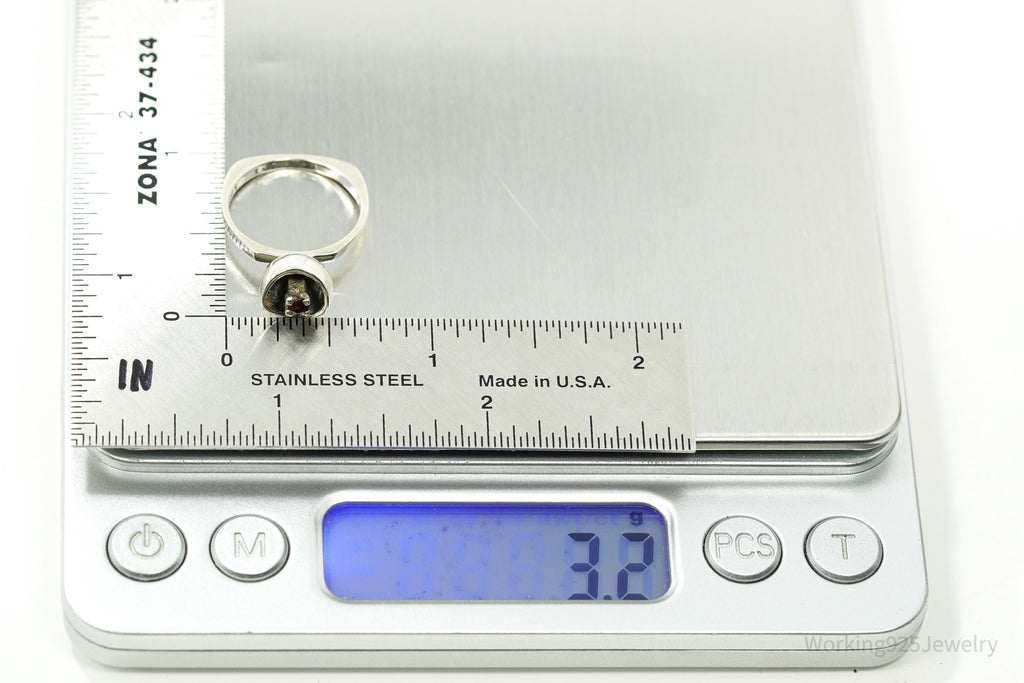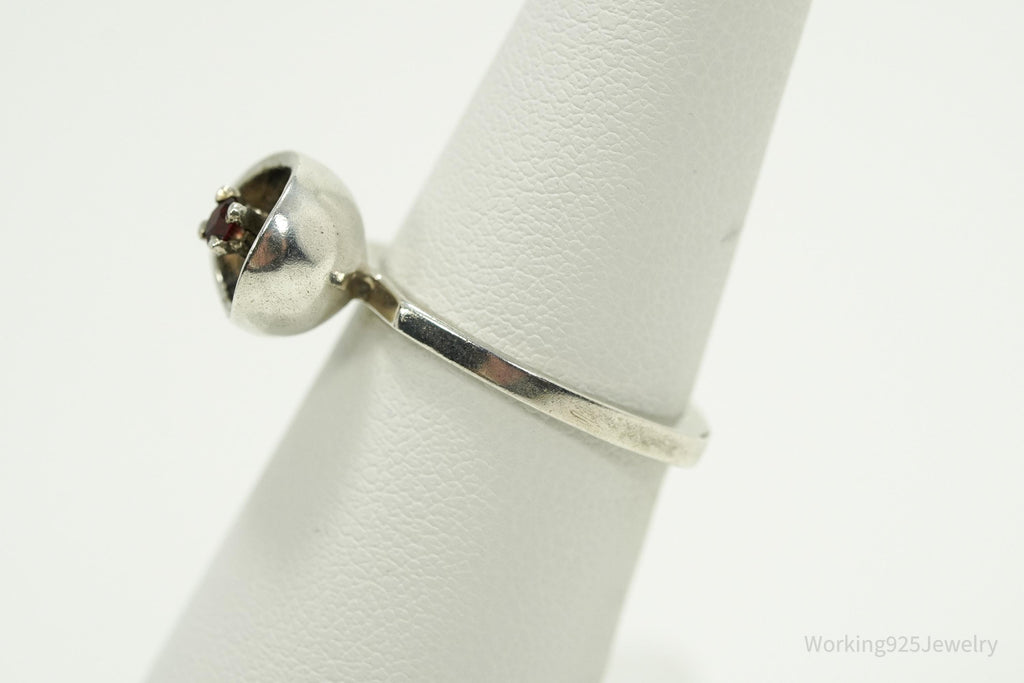 RARE Vintage Mid Century Modernist OPUS Garnet Sterling Silver Ring - Size 6