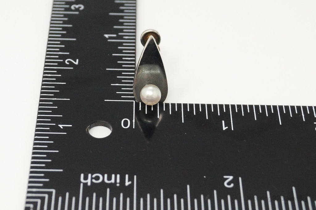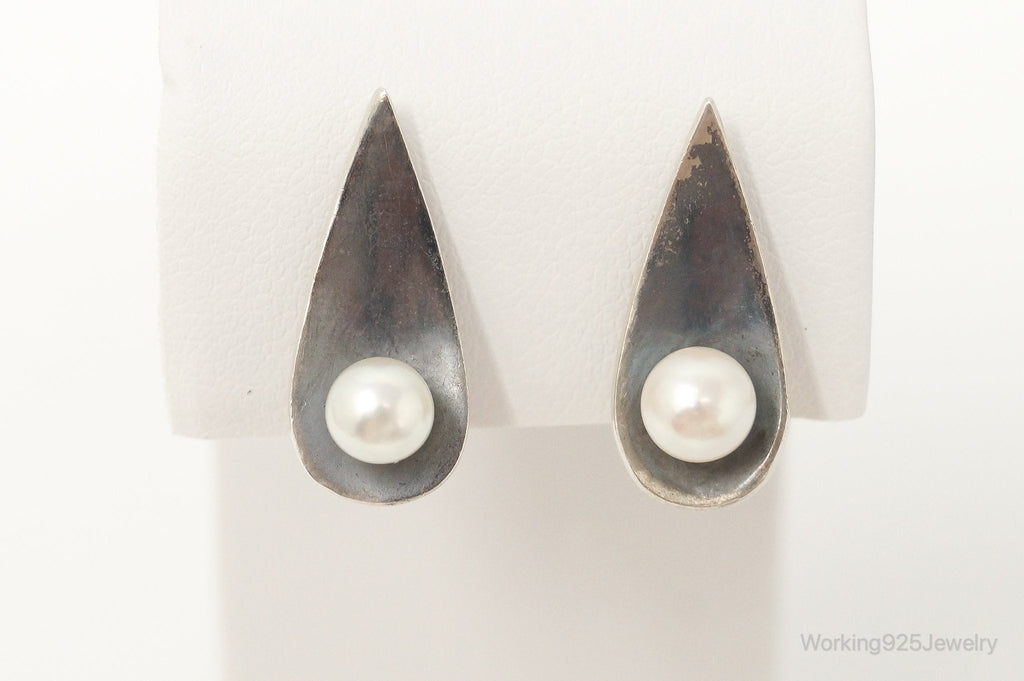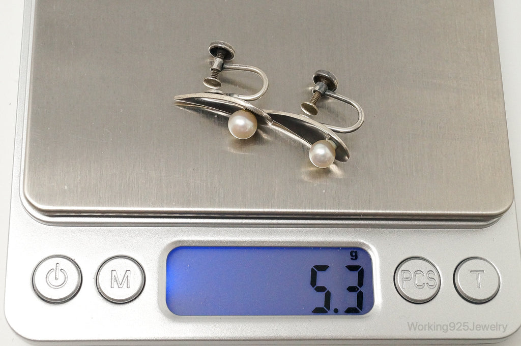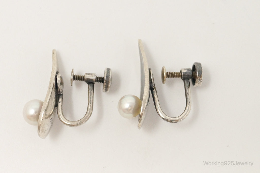 RARE Vintage Modernist Ed Wiener Pearl French Screw Back SterlingSilver Earrings