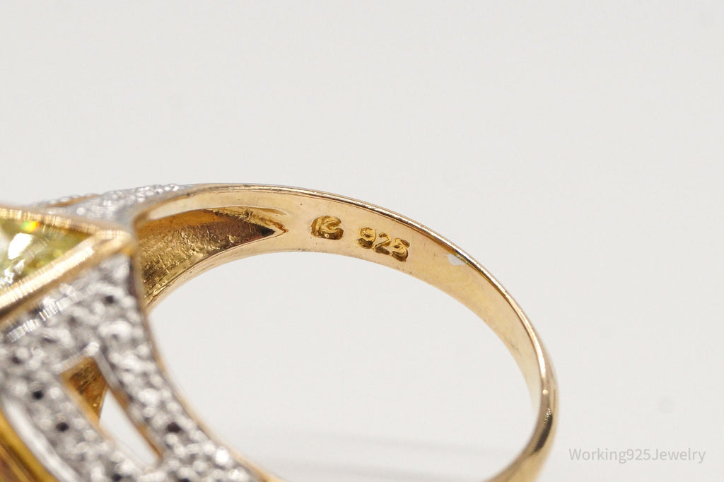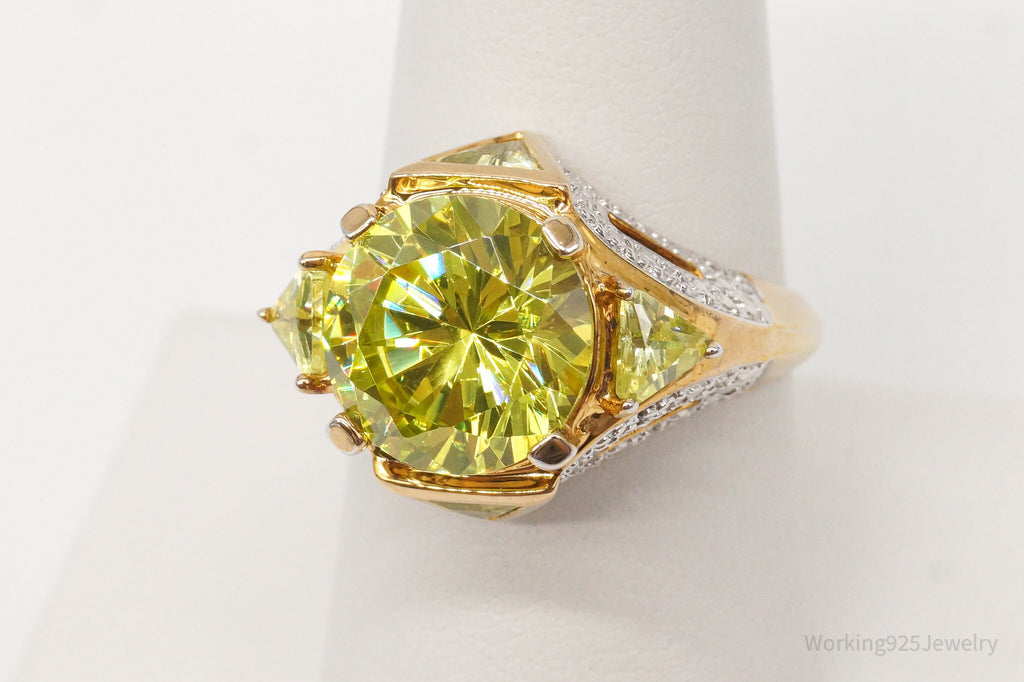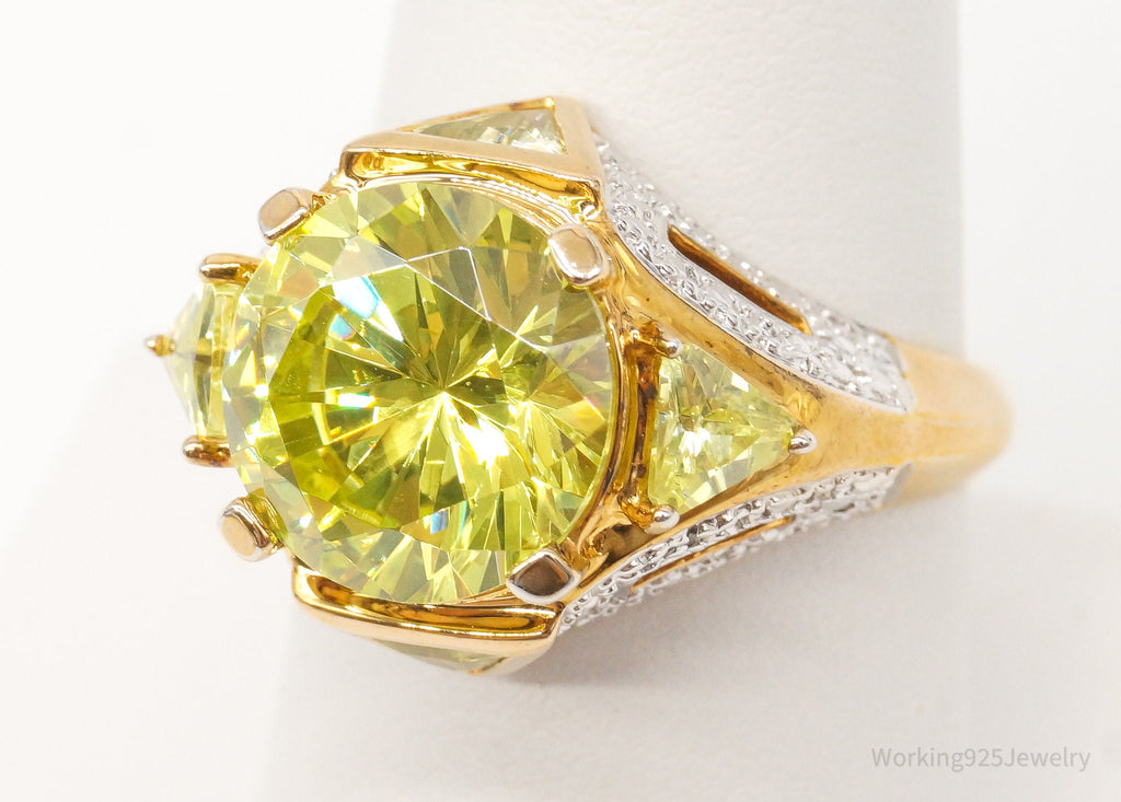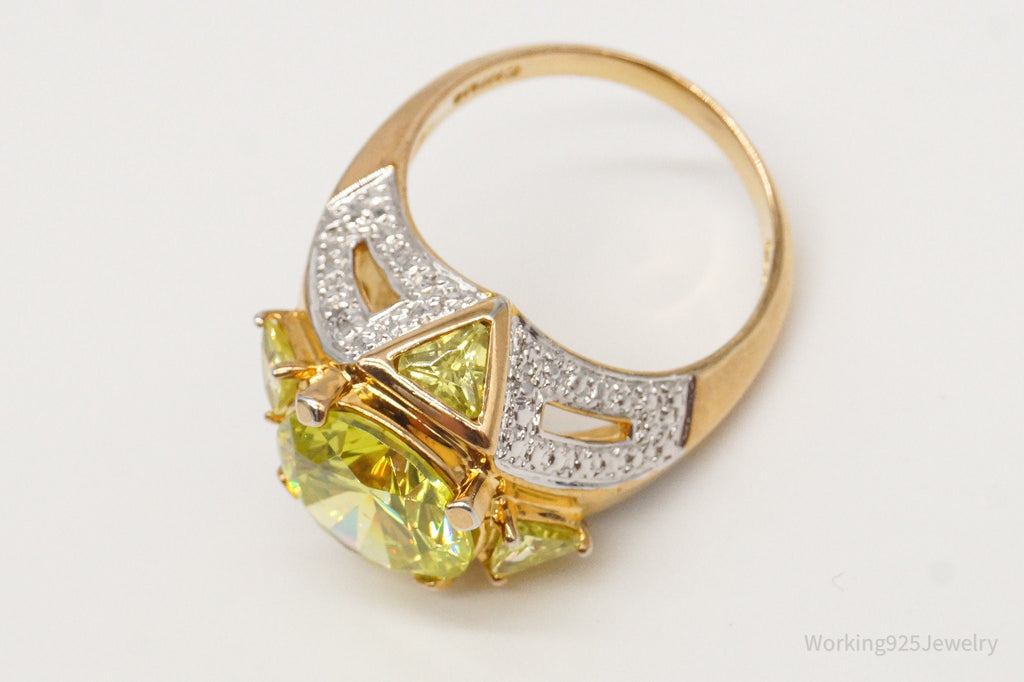 Ross Simons Green Cubic Zirconia 2 Diamond 18K Gold Vermeil Sterl.Sil. Ring Sz 8