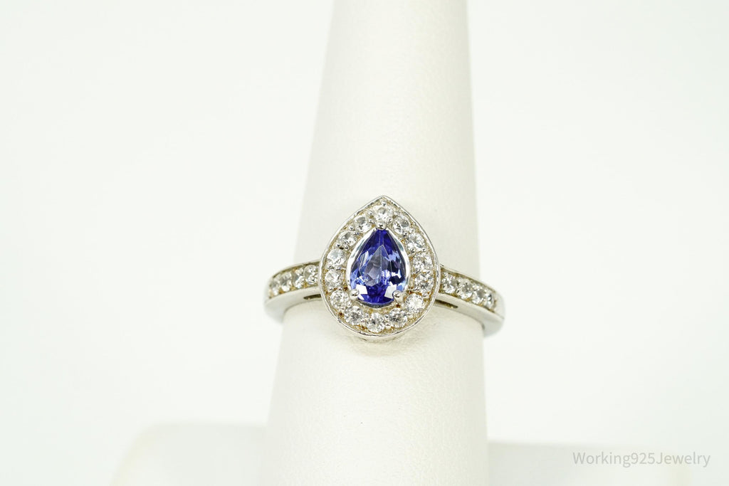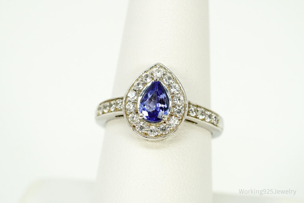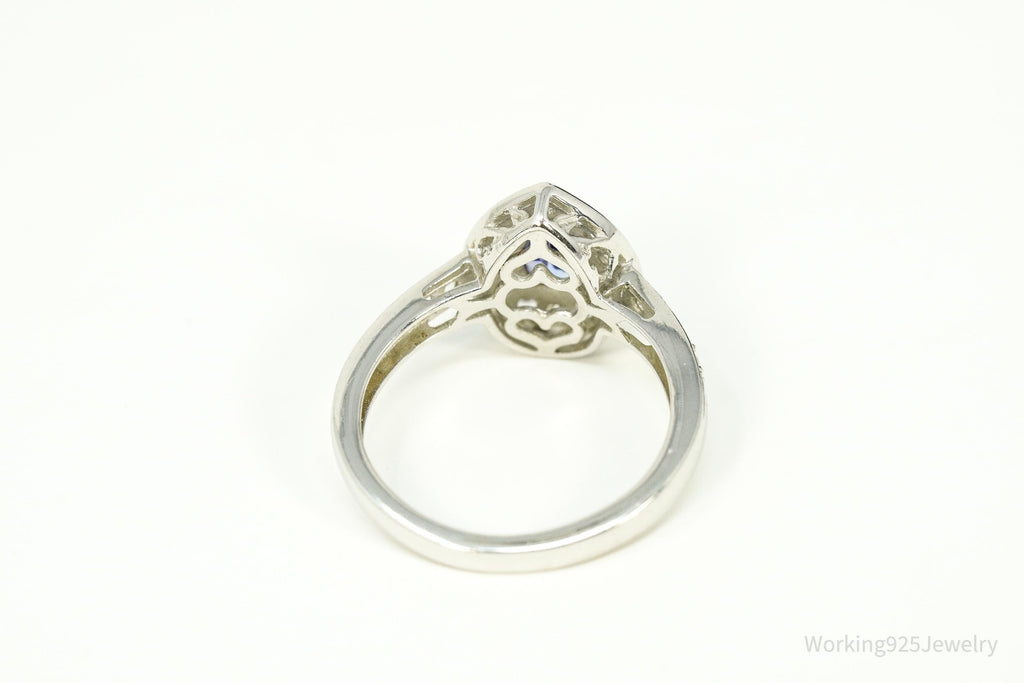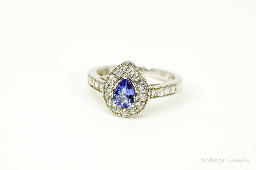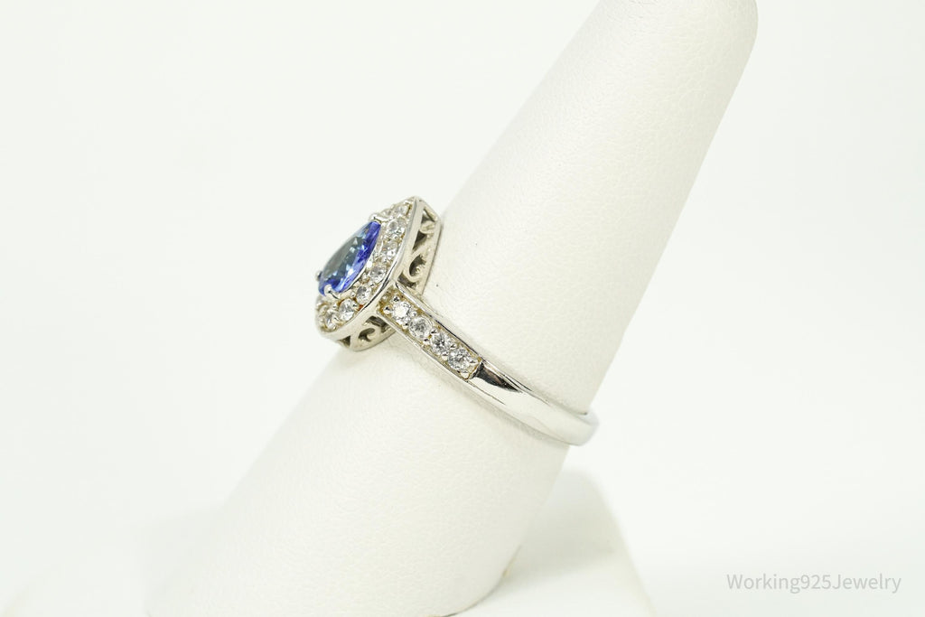 Tanzanite & White Zircon Rhodium Over Sterling Silver Ring - Size 8
