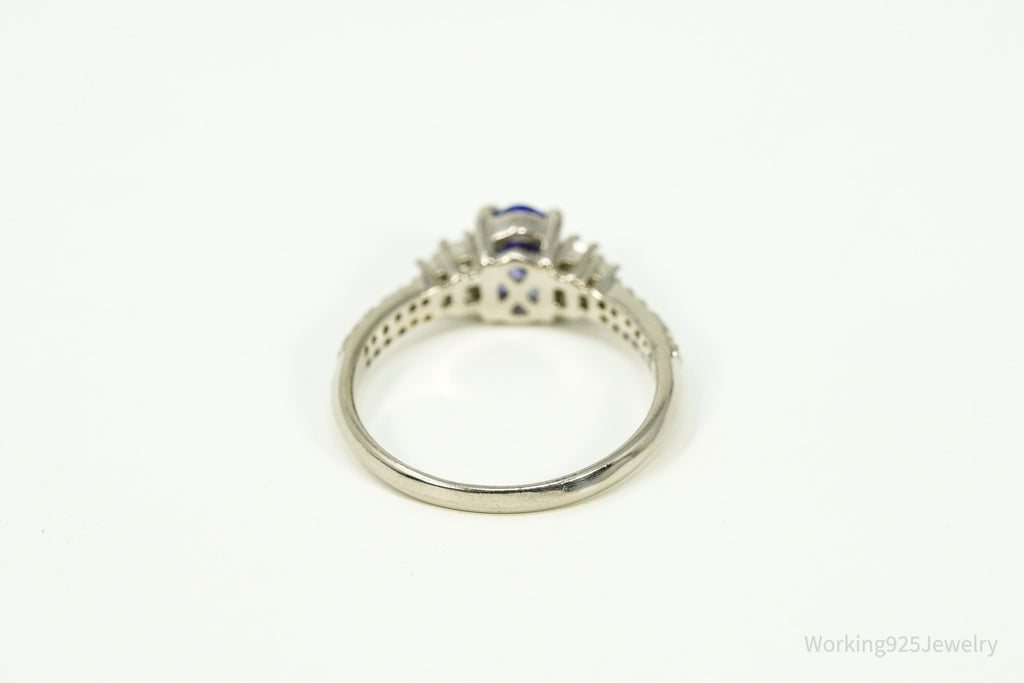 Tanzanite & White Zircon Sterling Silver Ring - Size 7