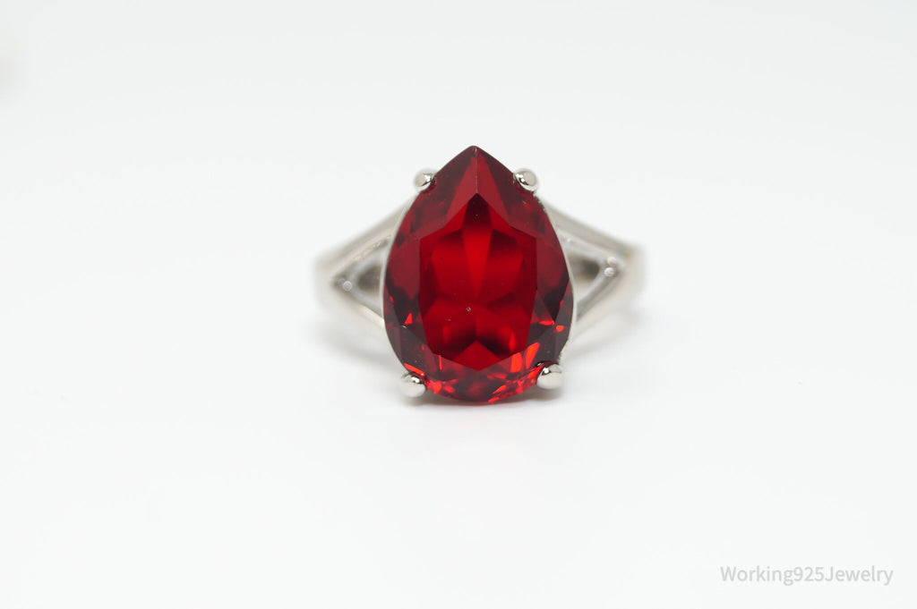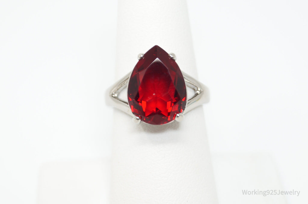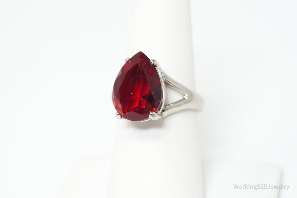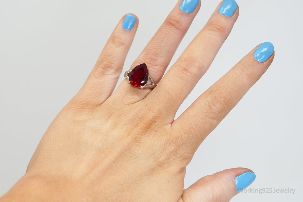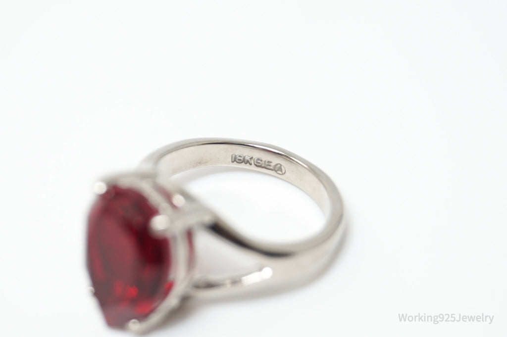 Vintage 18K Gold Filled Garnet Deco Style Sterling Silver Ring - Size 7