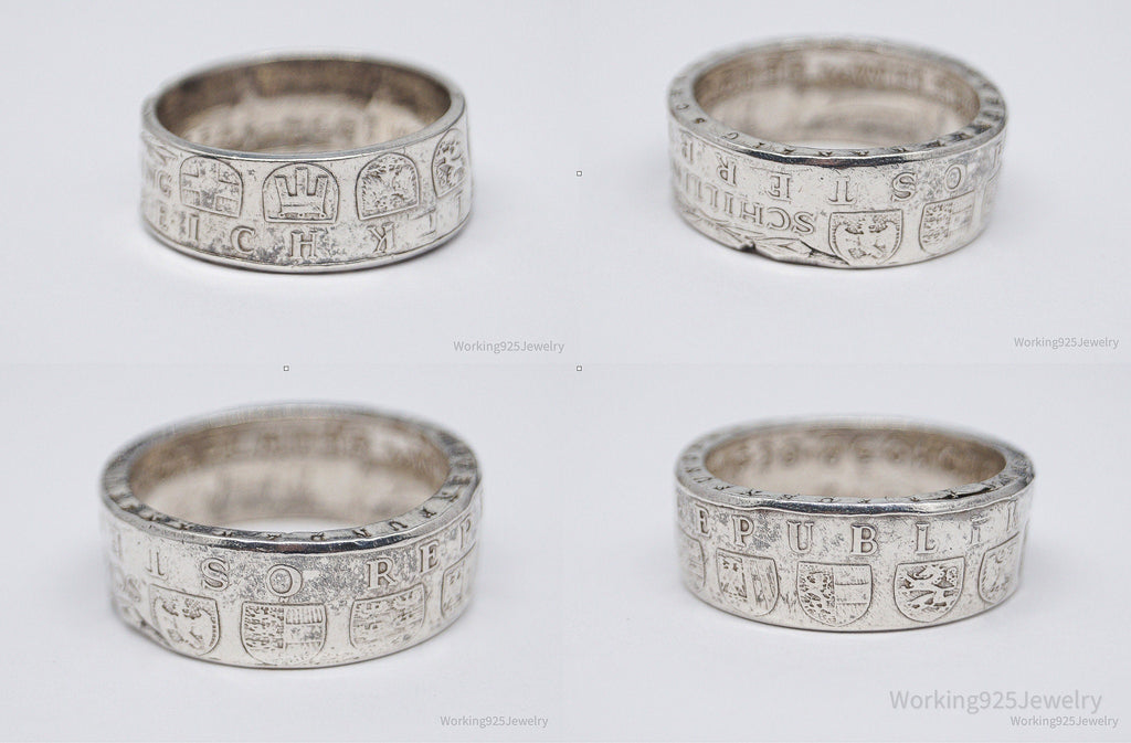 Vintage 1958 Austria Schilling Silver Coin Ring - Size 11.5