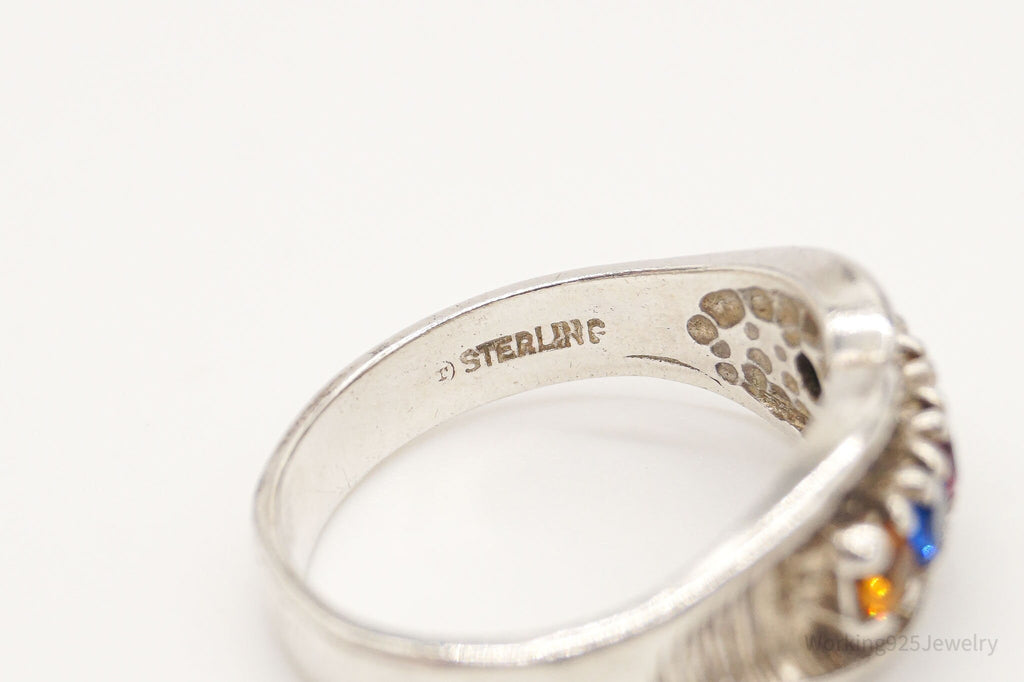 Vintage 1960s Multi Gemstone Sterling Silver Ring - Size 6.5