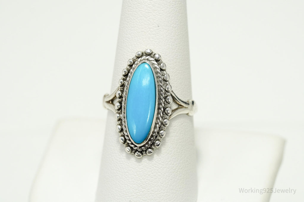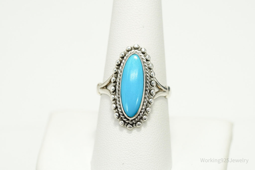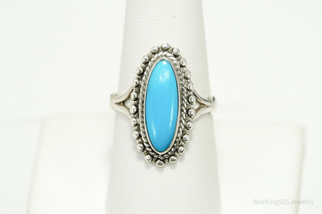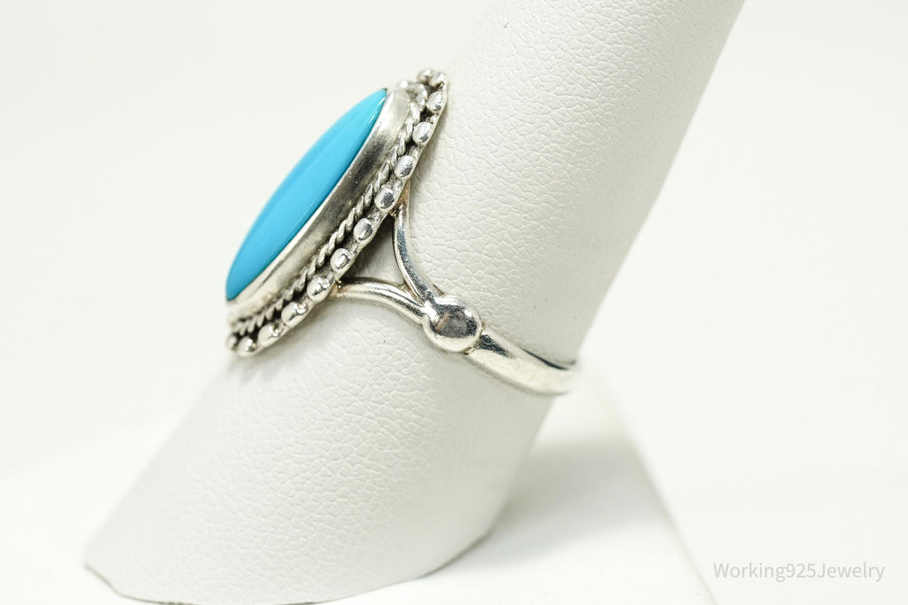 Vintage 1984 Southwestern Style Turquoise Sterling Silver Ring - Size 8.5