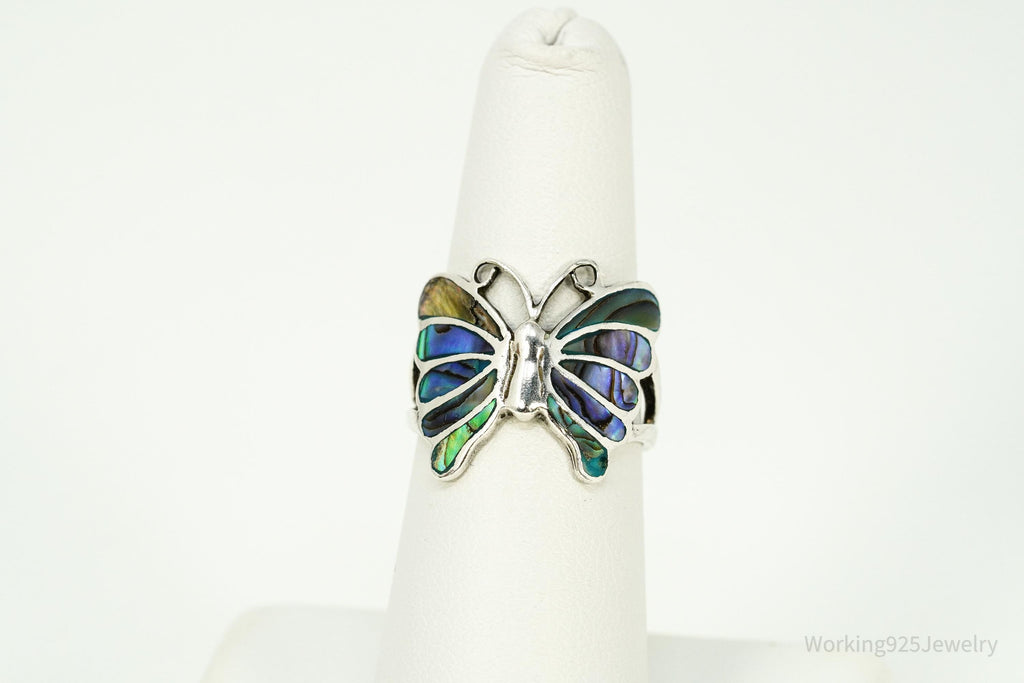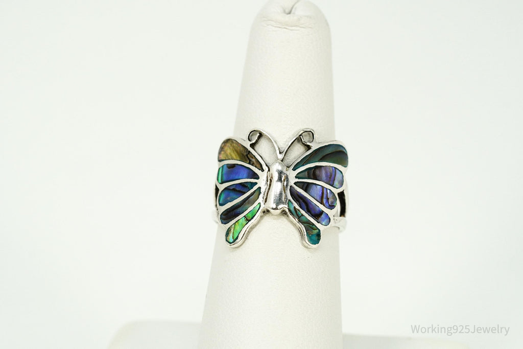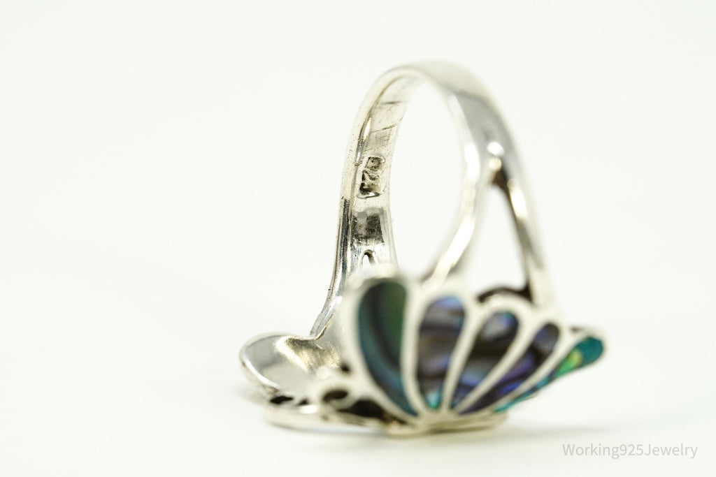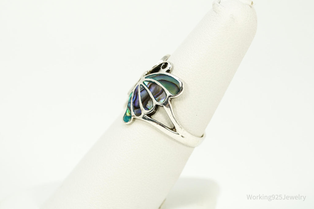 Vintage Abalone Paua Shell Inlay Sterling Silver Butterfly Ring - Size 7
