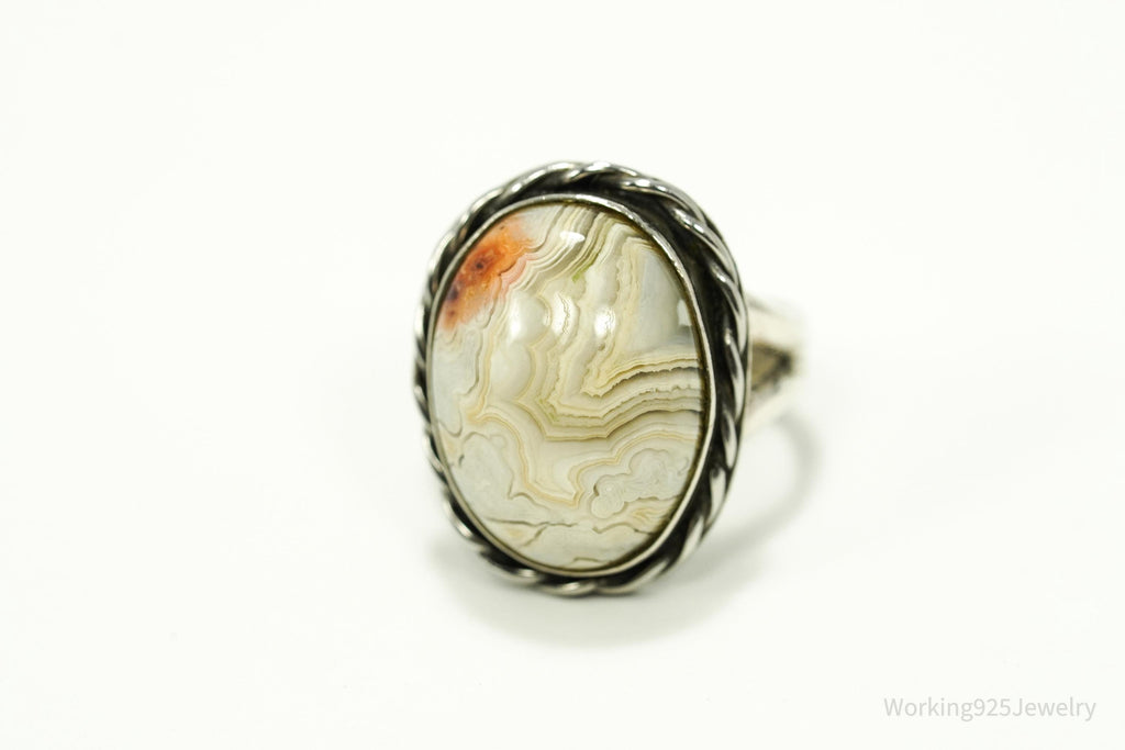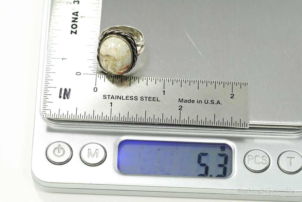 Vintage Agate Silver Ring Size 4.5