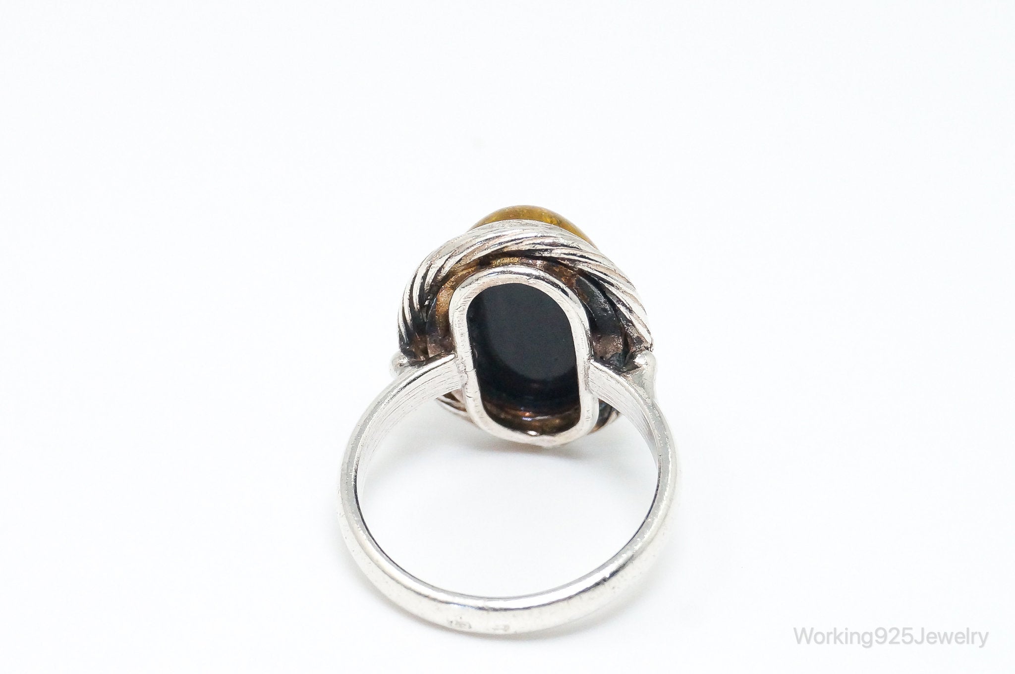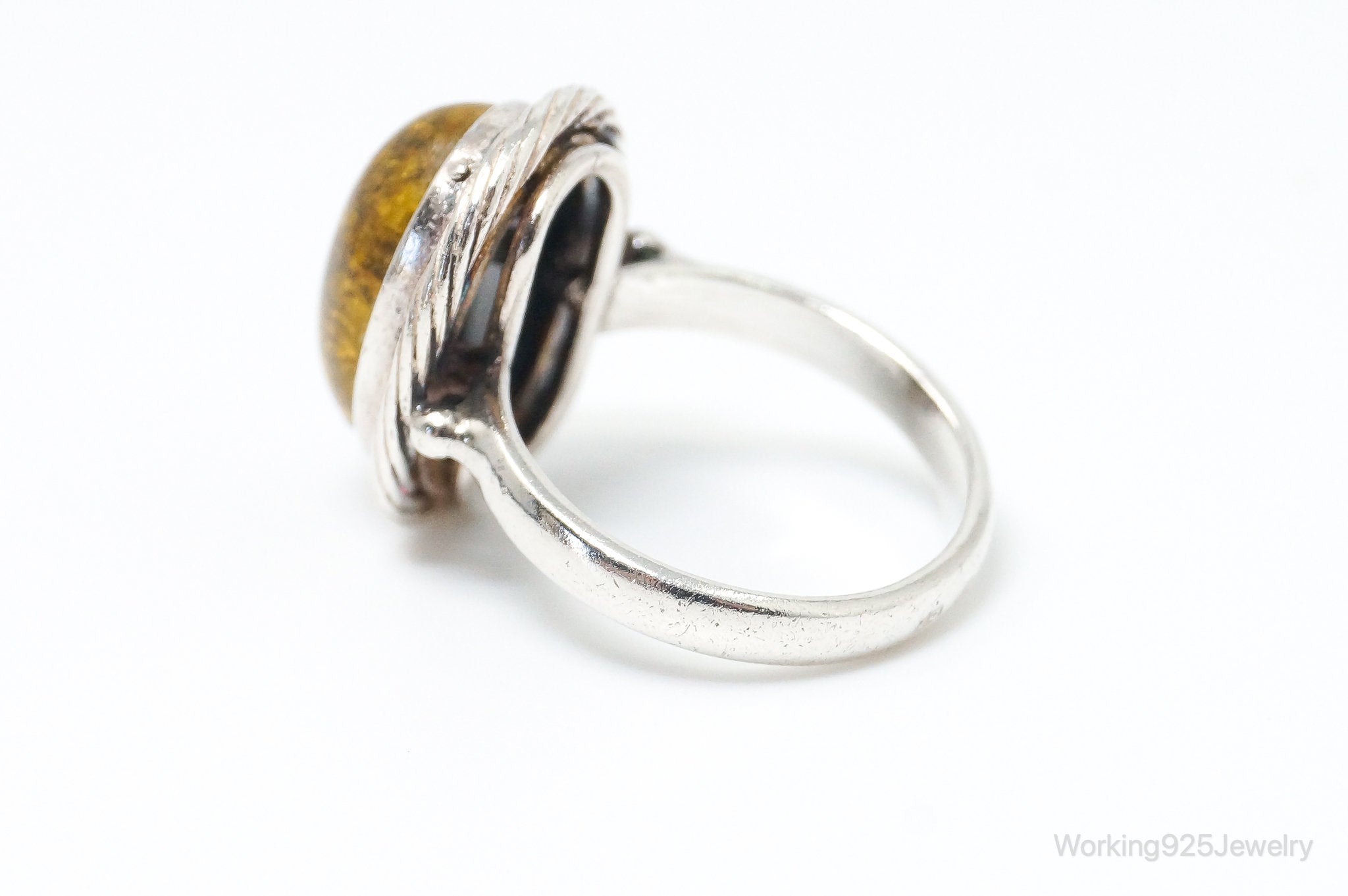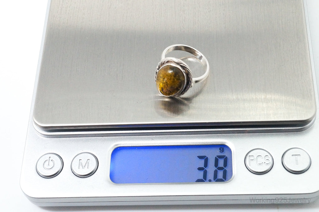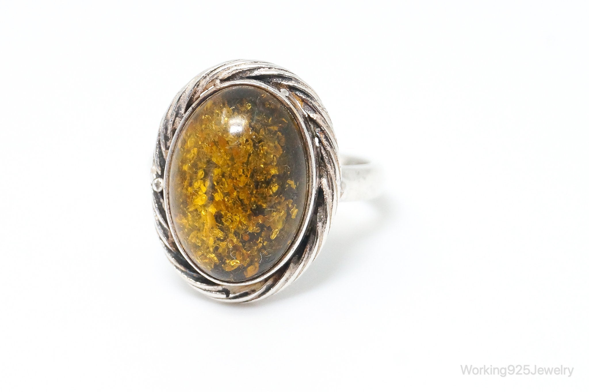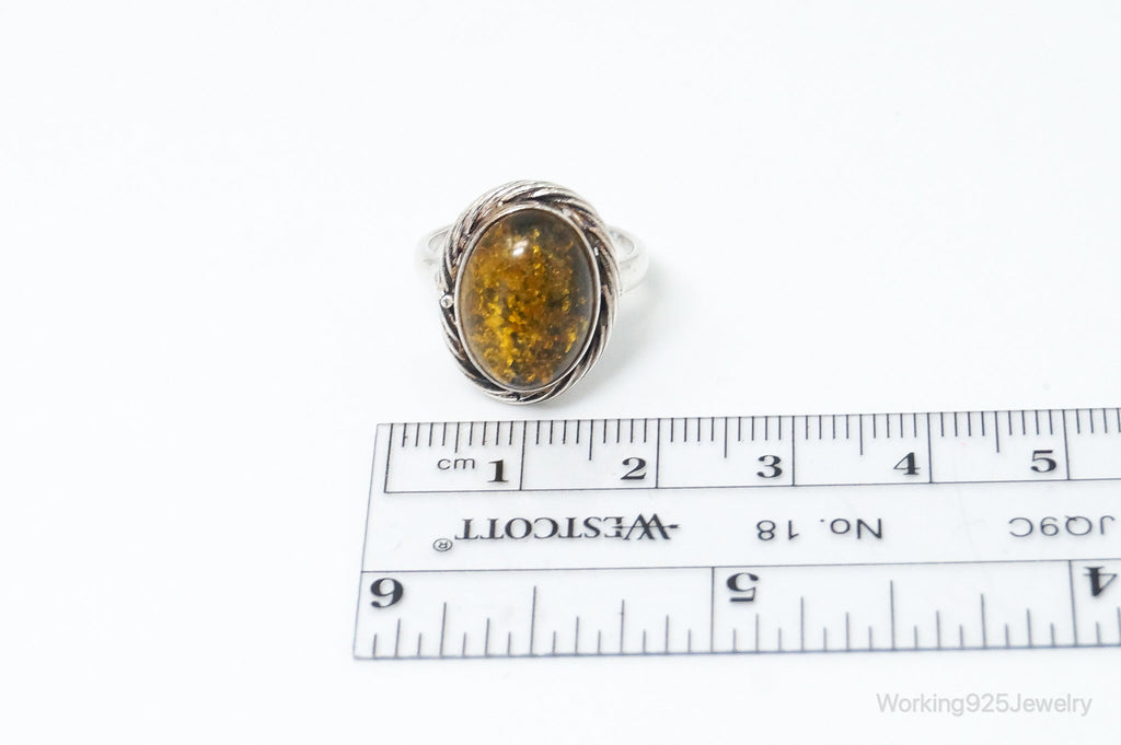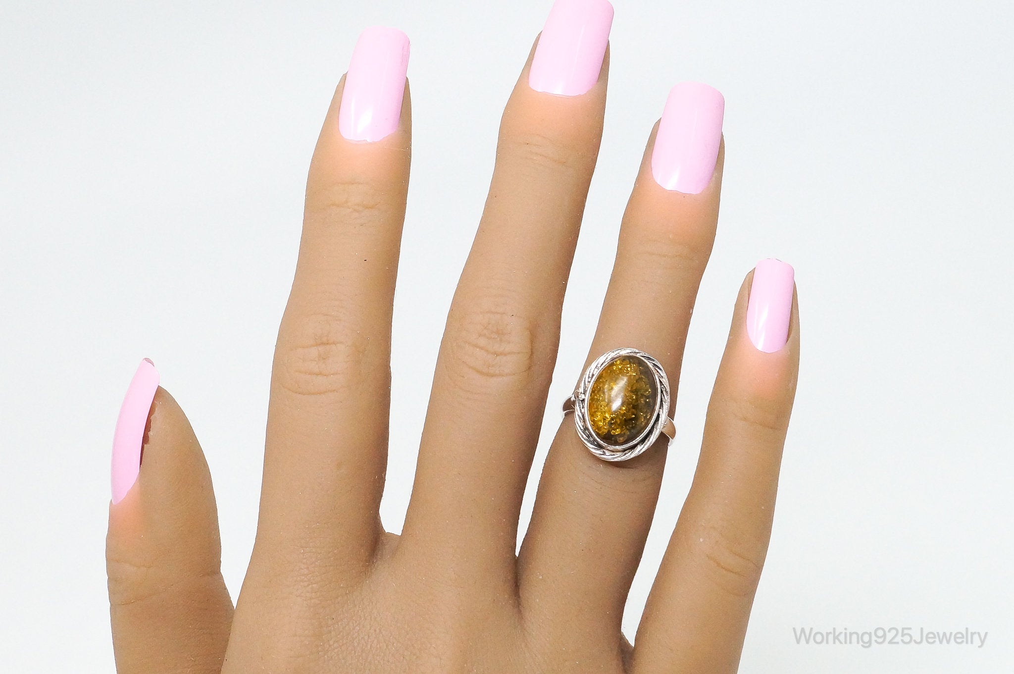 Vintage Amber Modern Sterling Silver Ring - Size 5