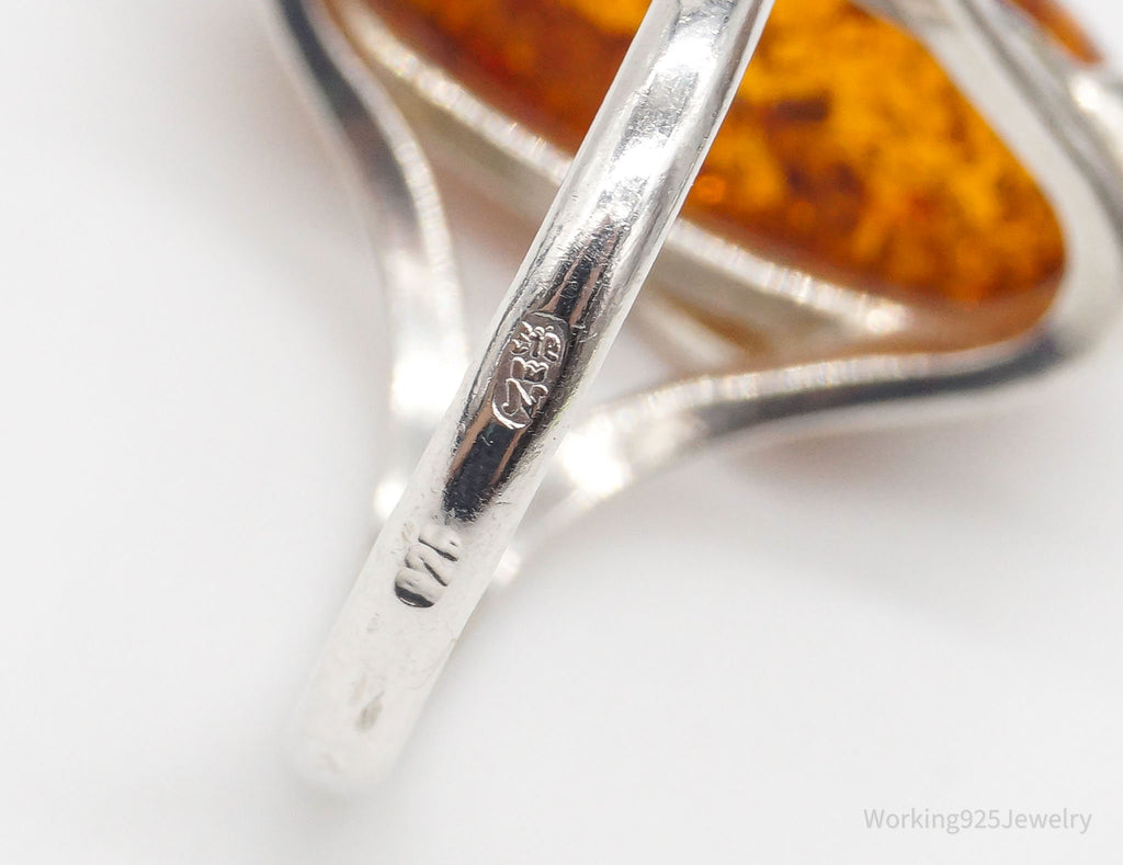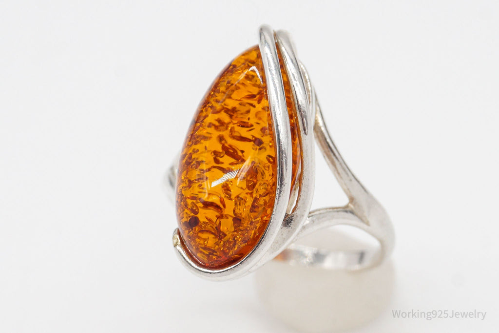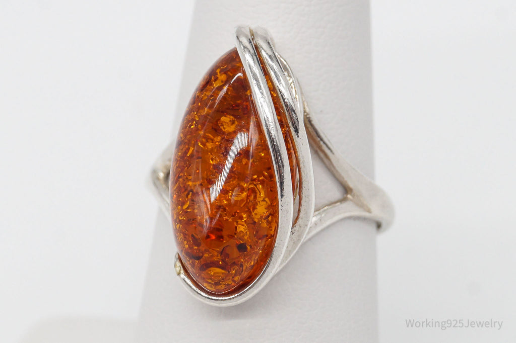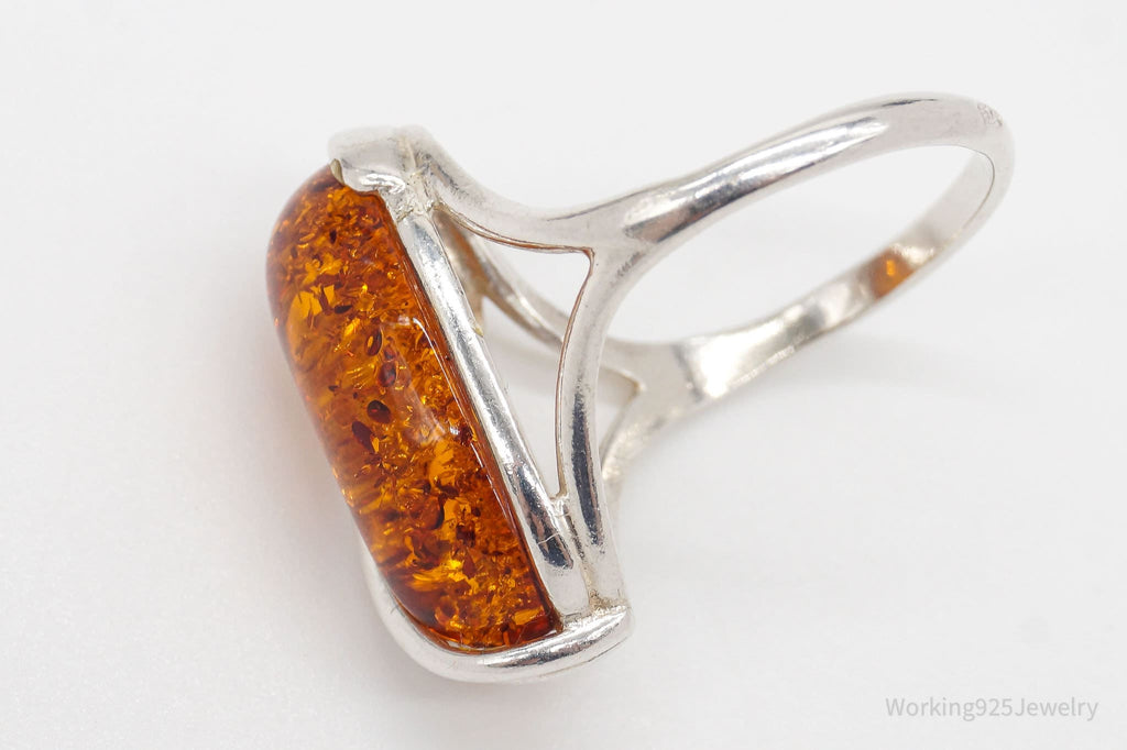 Vintage Amber Modernist Sterling Silver Ring - Size 8.25