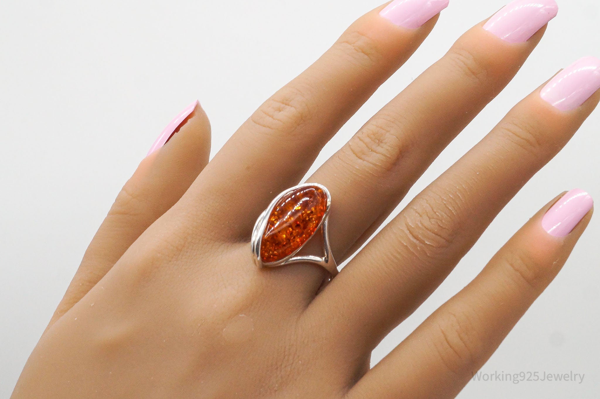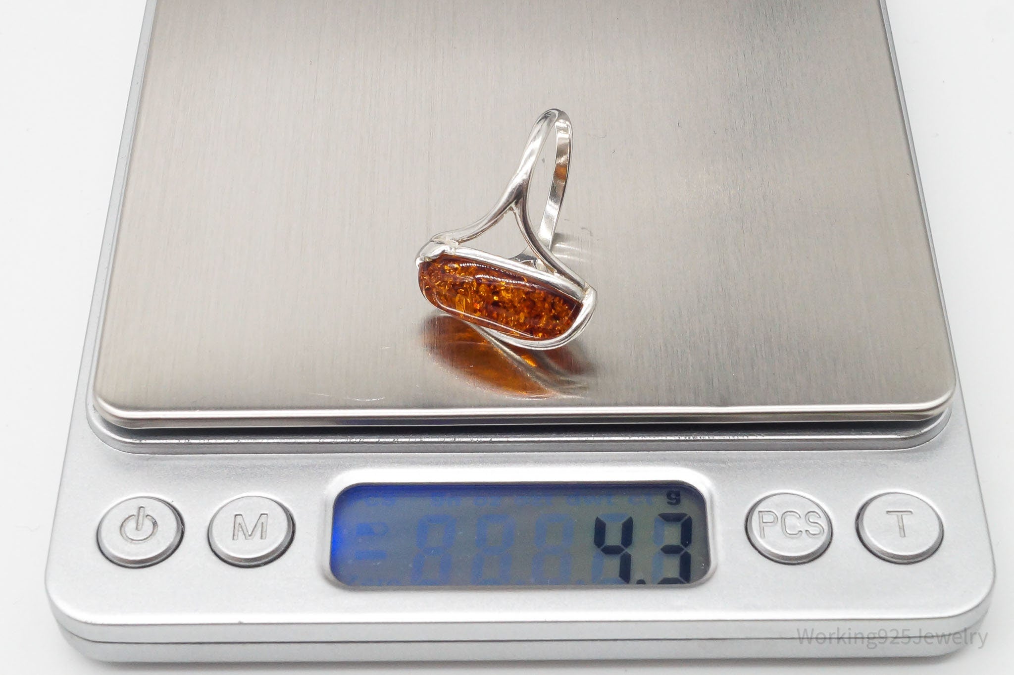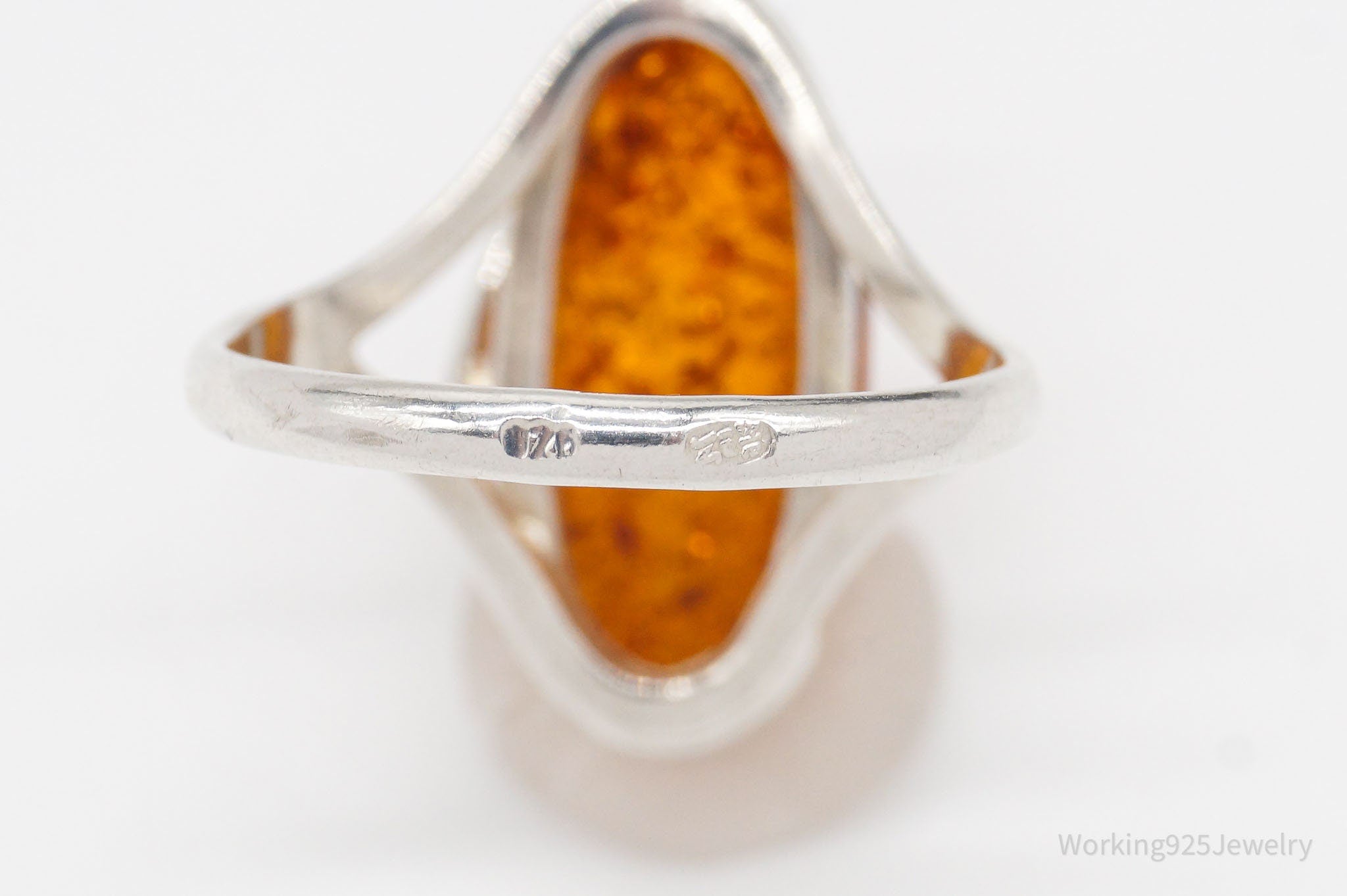 Vintage Amber Modernist Sterling Silver Ring - Size 8.25
