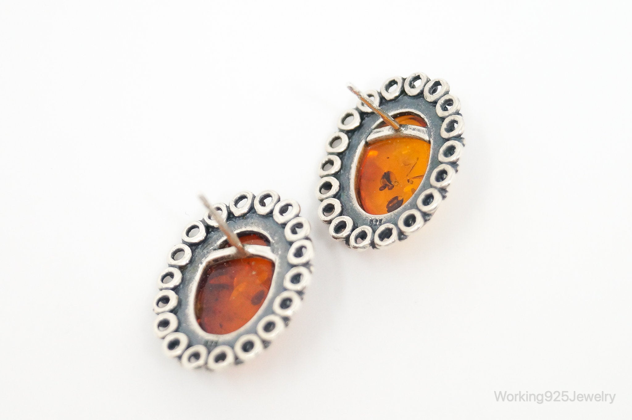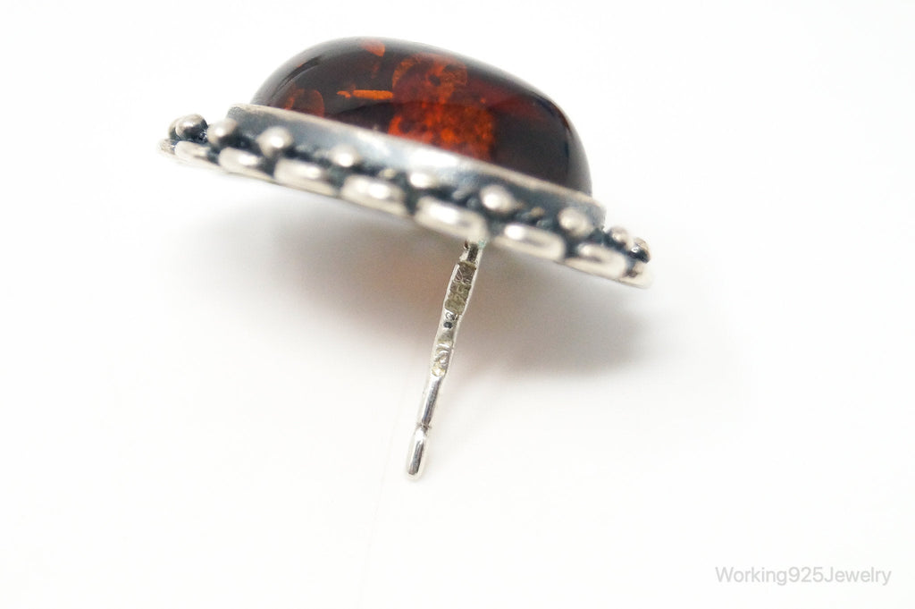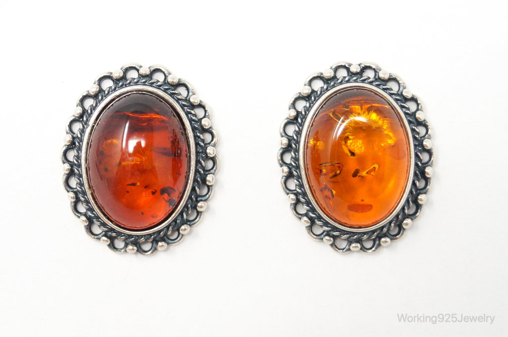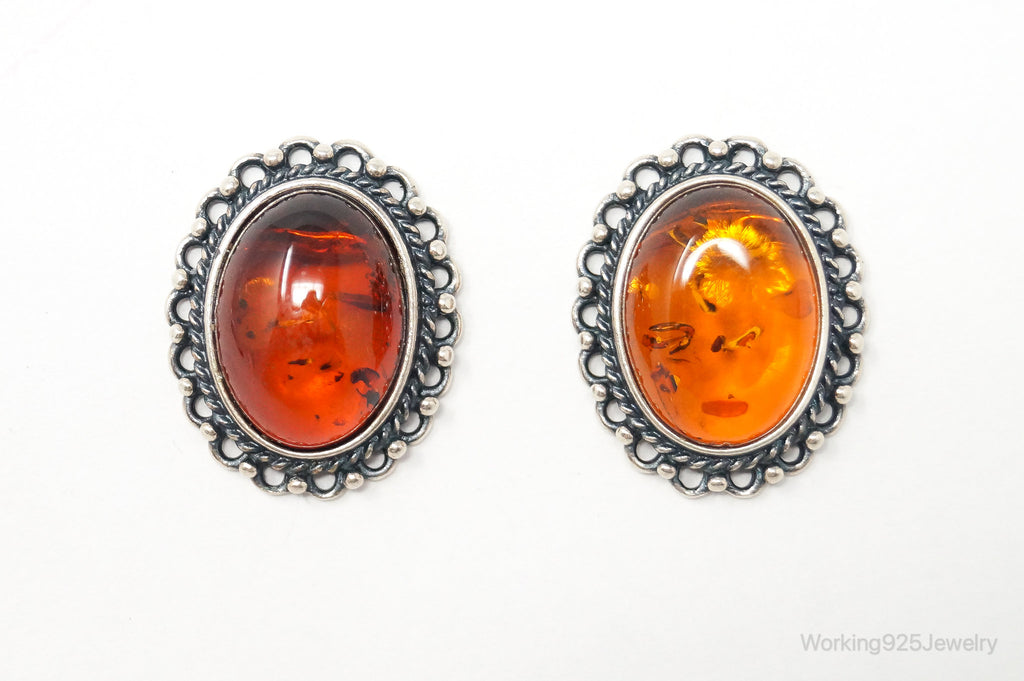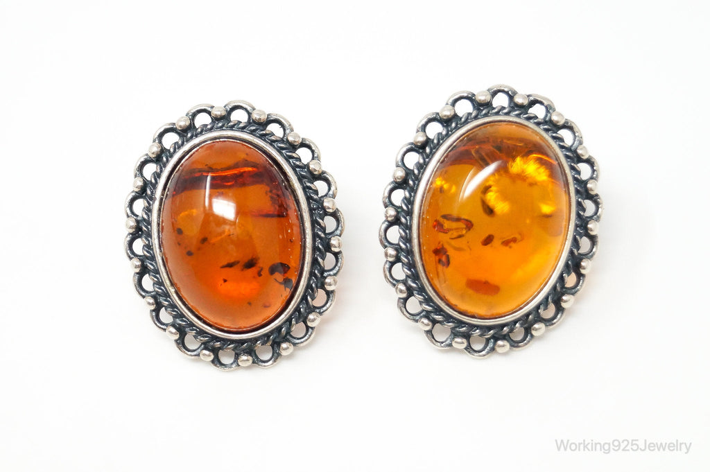 Vintage Amber Sterling Silver Earrings