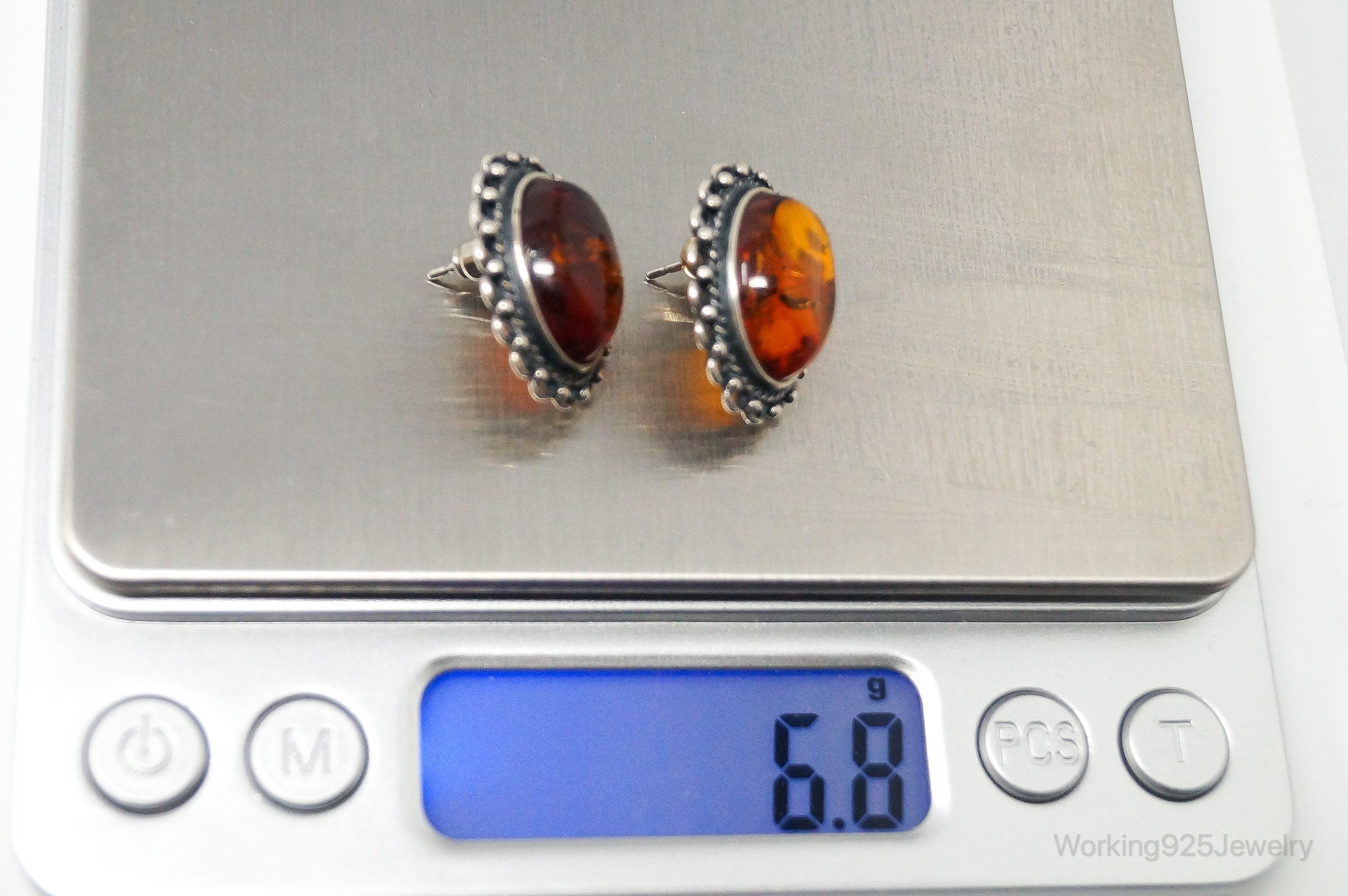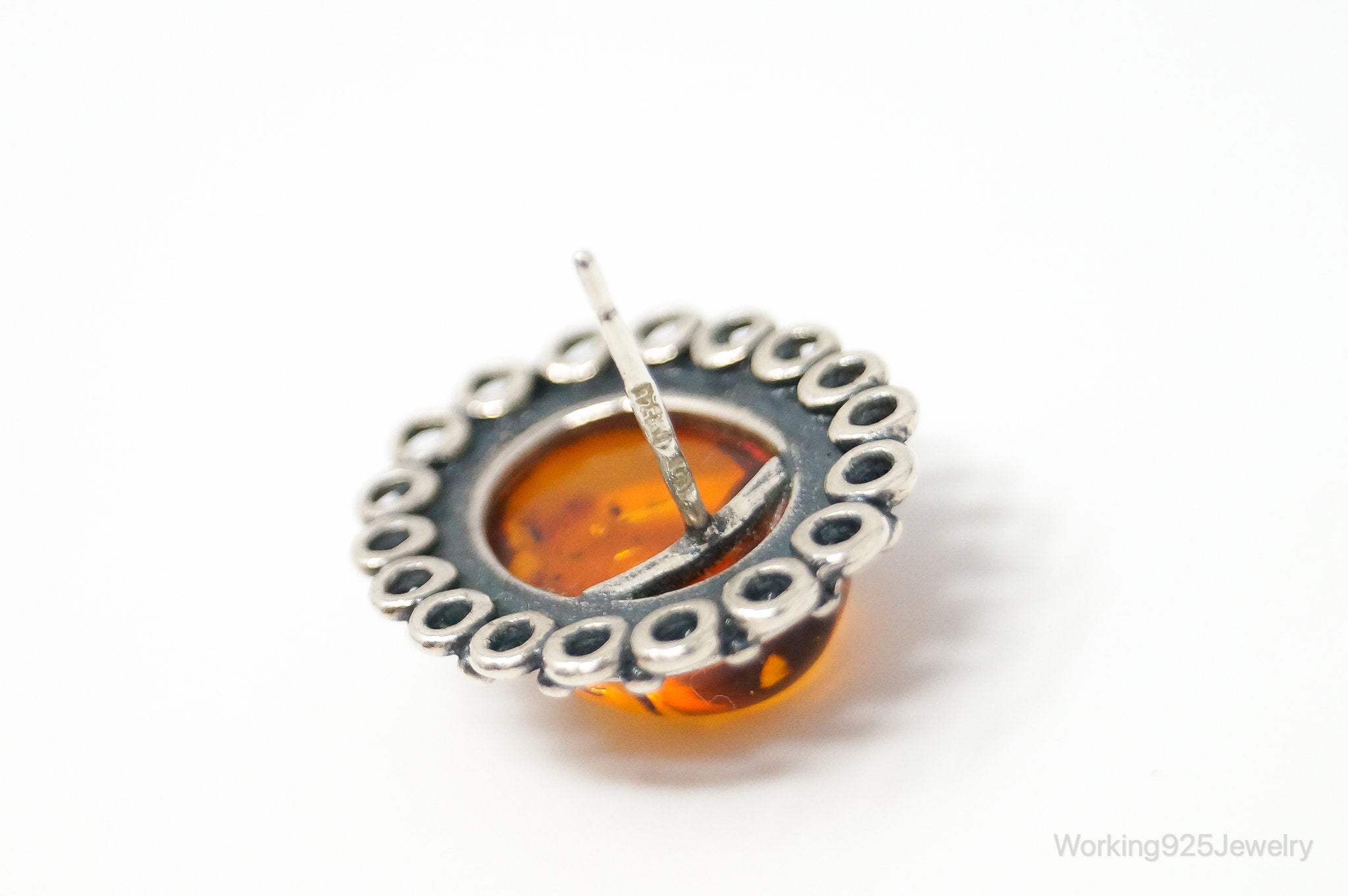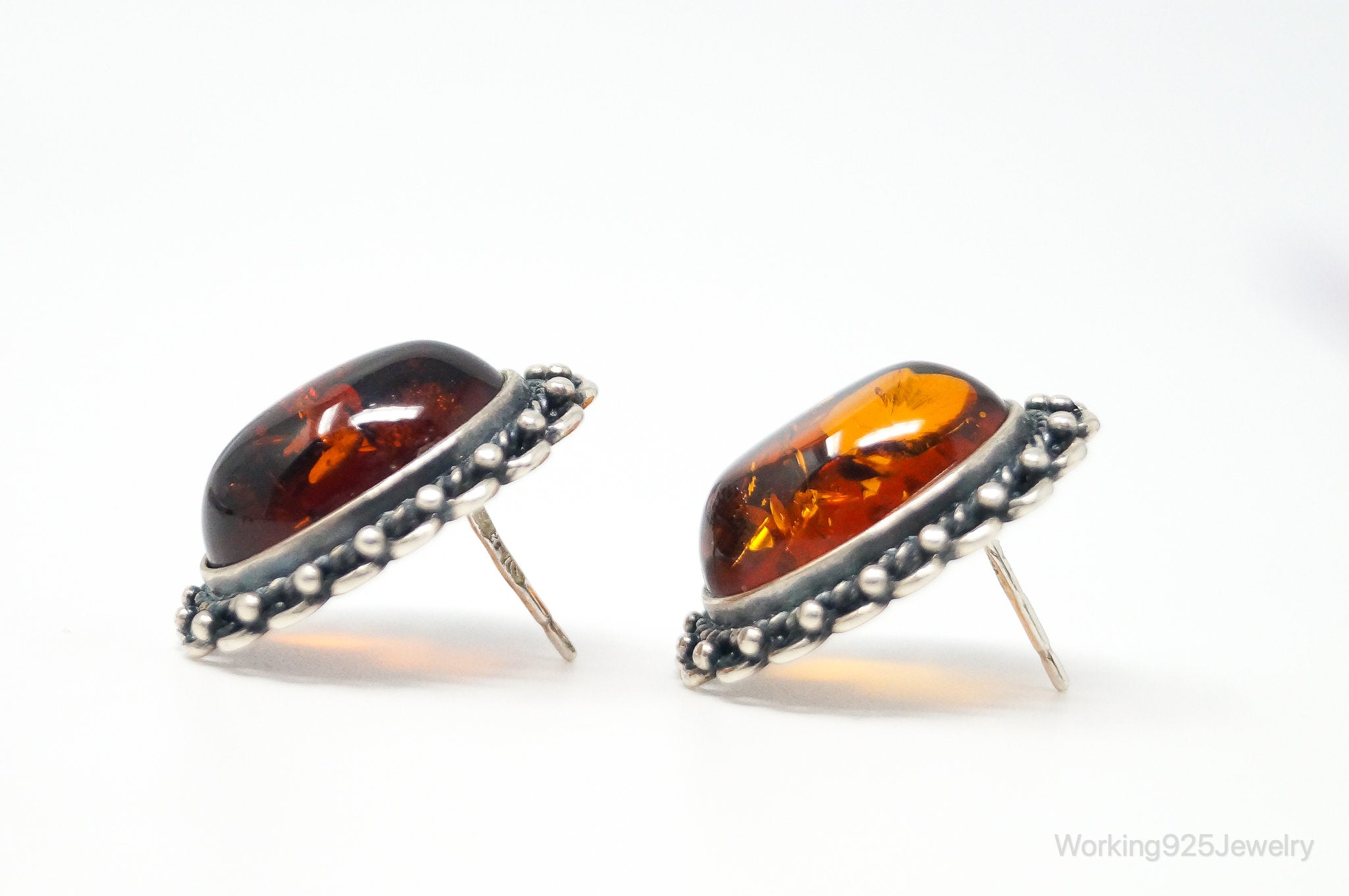 Vintage Amber Sterling Silver Earrings