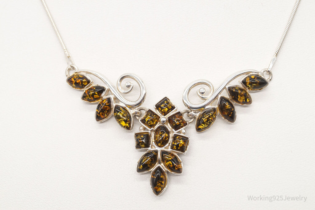 Vintage Amber Sterling Silver Necklace