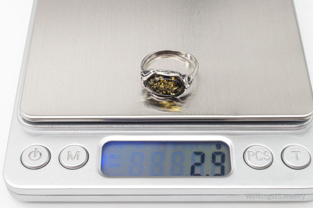 Vintage Amber Sterling Silver Ring Size 7.75