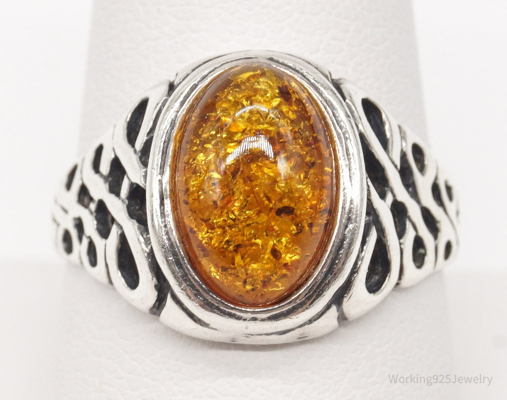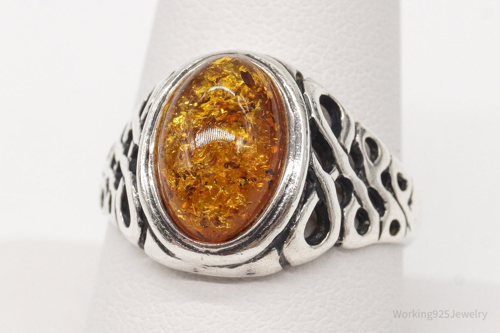 Vintage Amber Sterling Silver Ring - Size 9.5