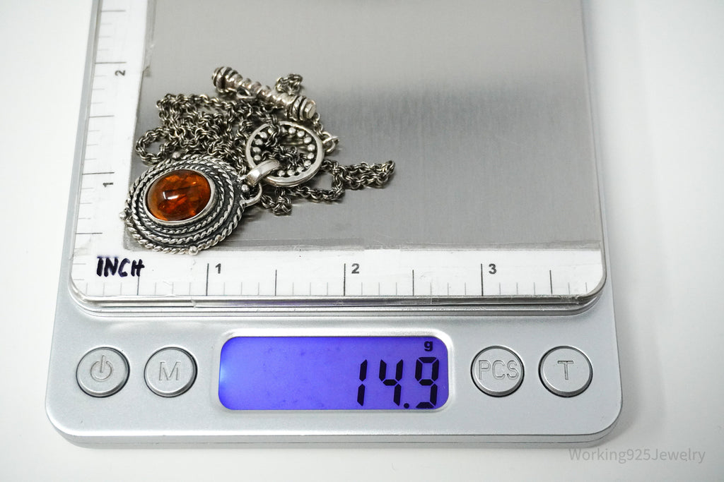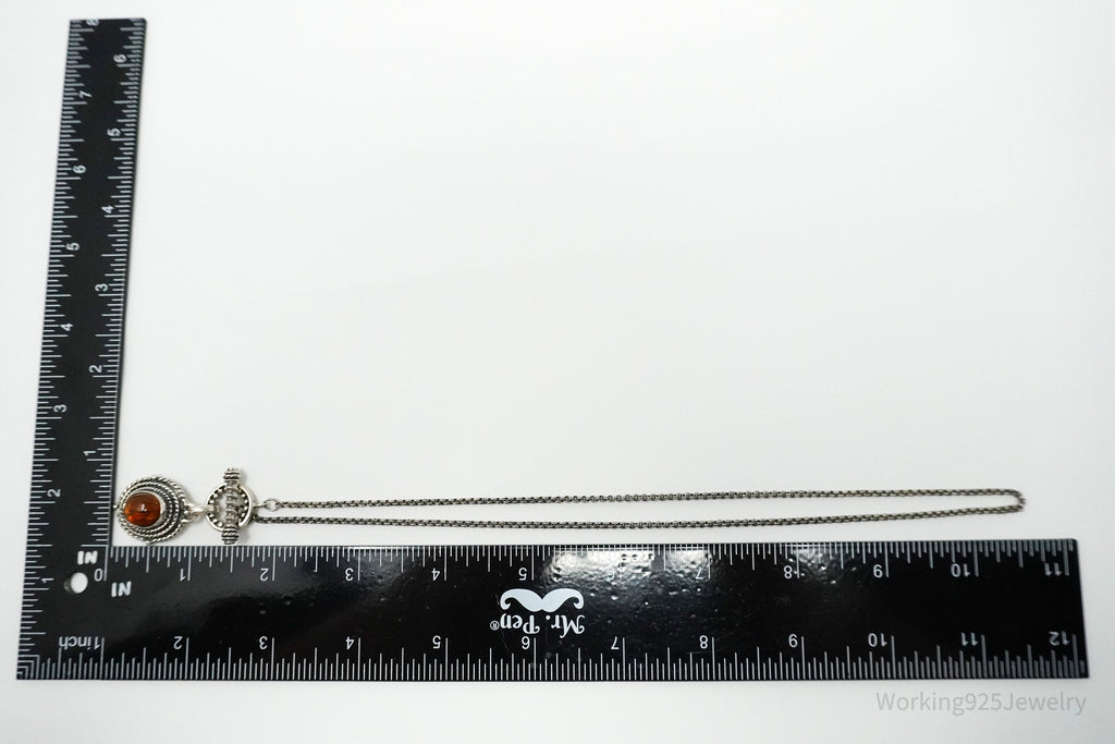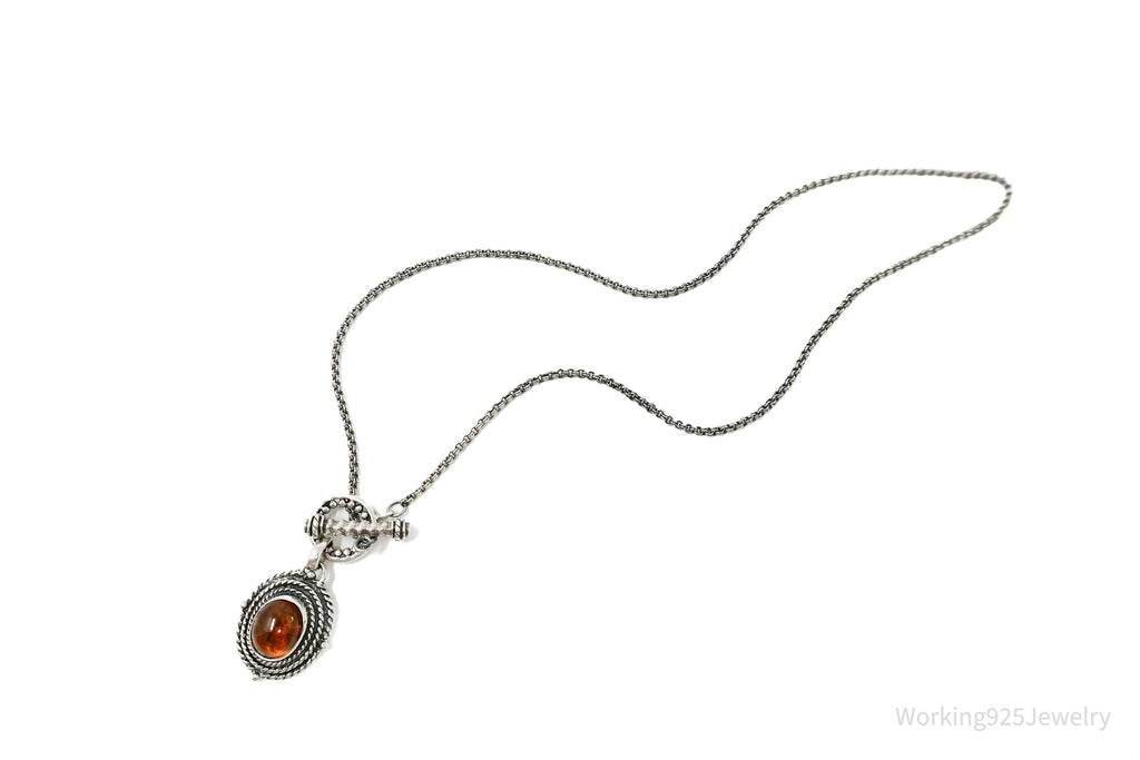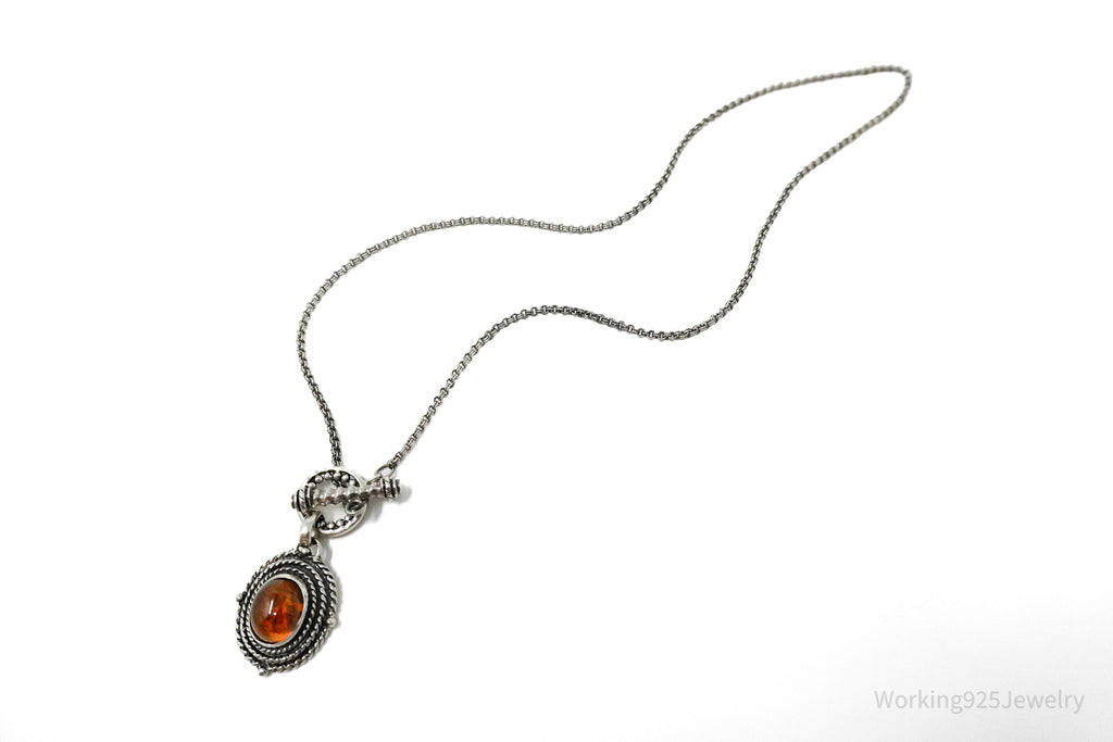 Vintage Amber Sterling Silver Toggle Necklace 18"