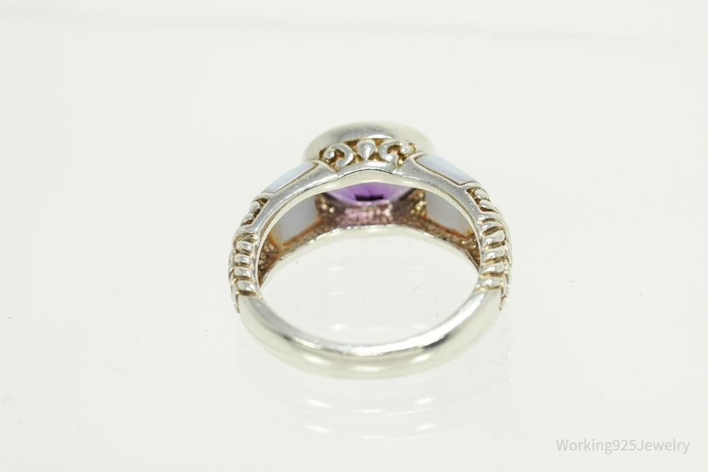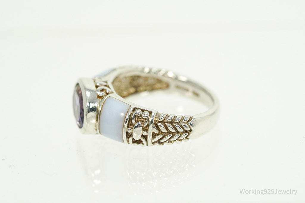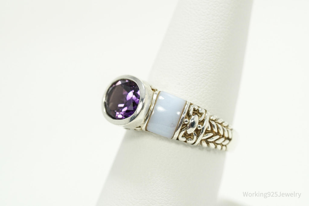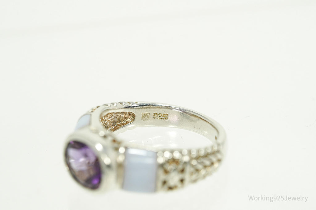 Vintage Amethyst & Blue Chalcedony Sterling Silver Ring - Size 8.25