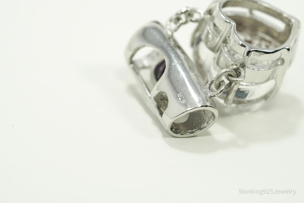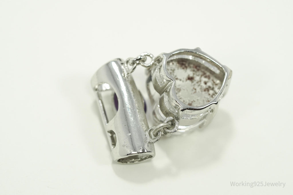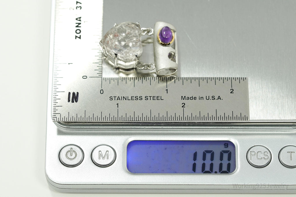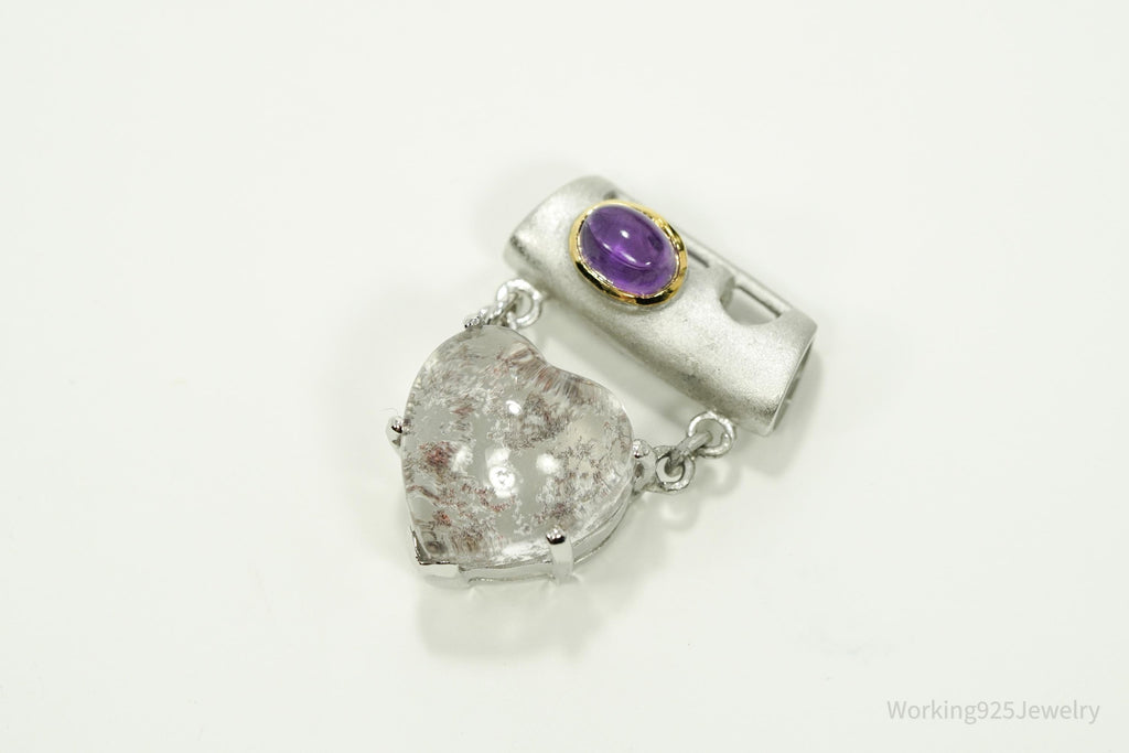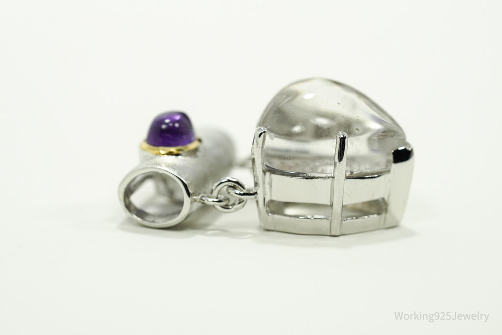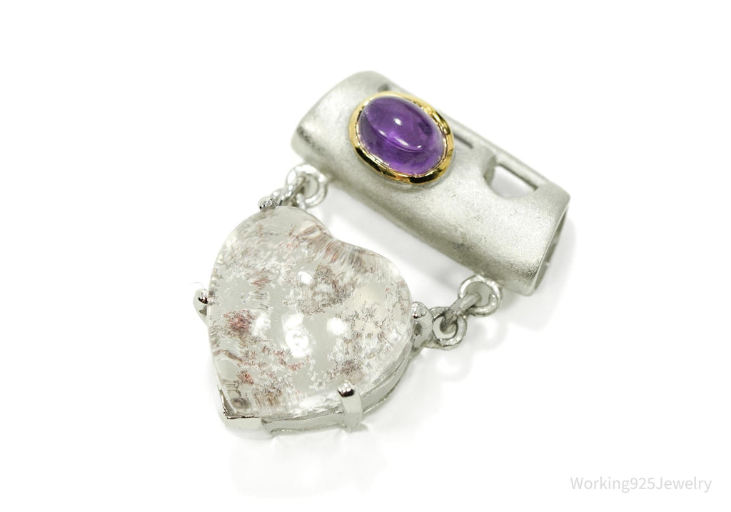 Vintage Amethyst & Crystal Heart Gold Vermeil Sterling Silver Necklace Pendant