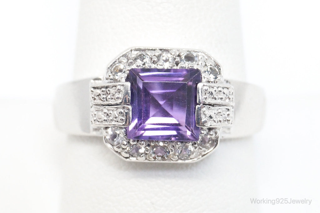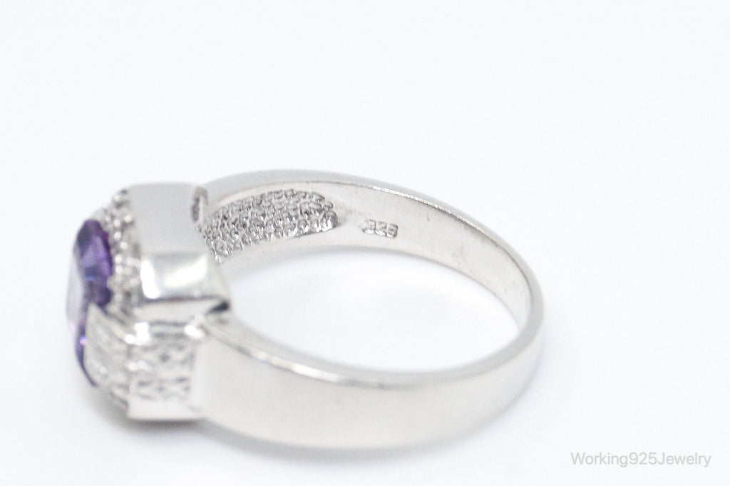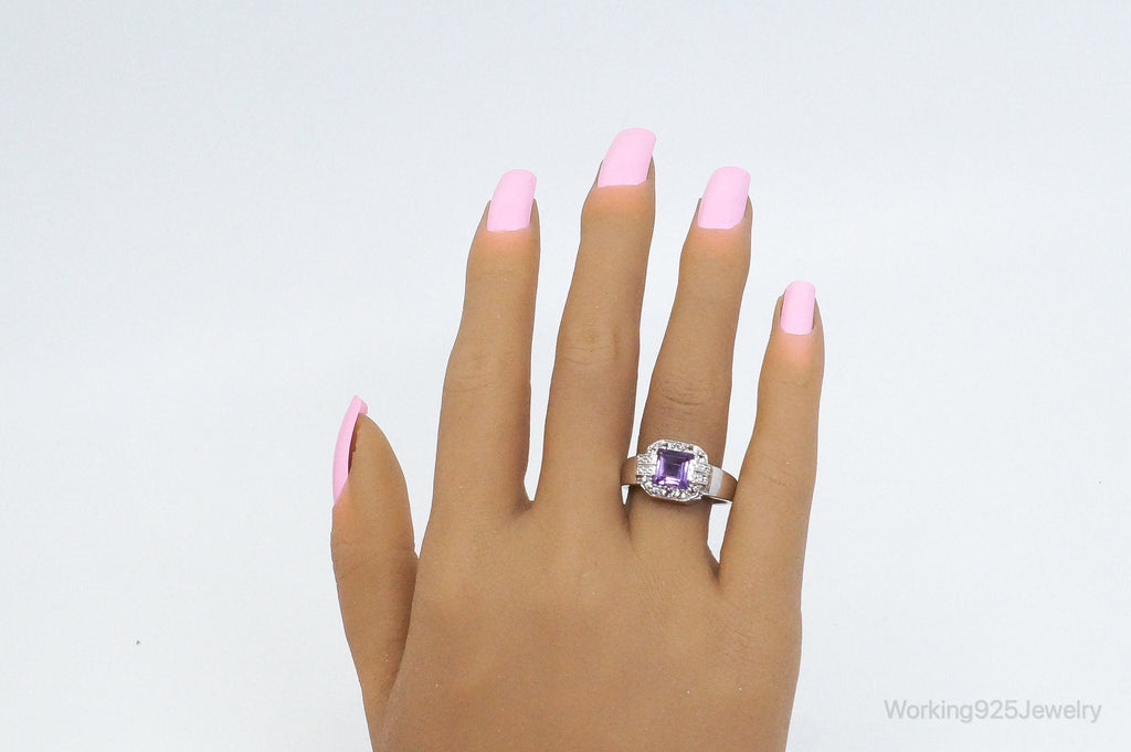 Vintage Amethyst Cubic Zirconia Art Deco Sterling Silver Ring - SZ 10.25