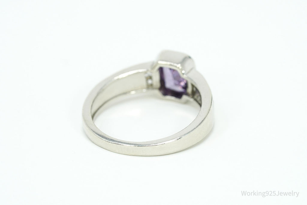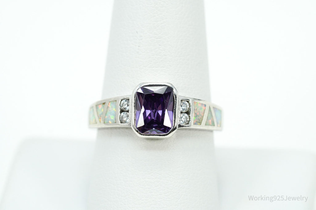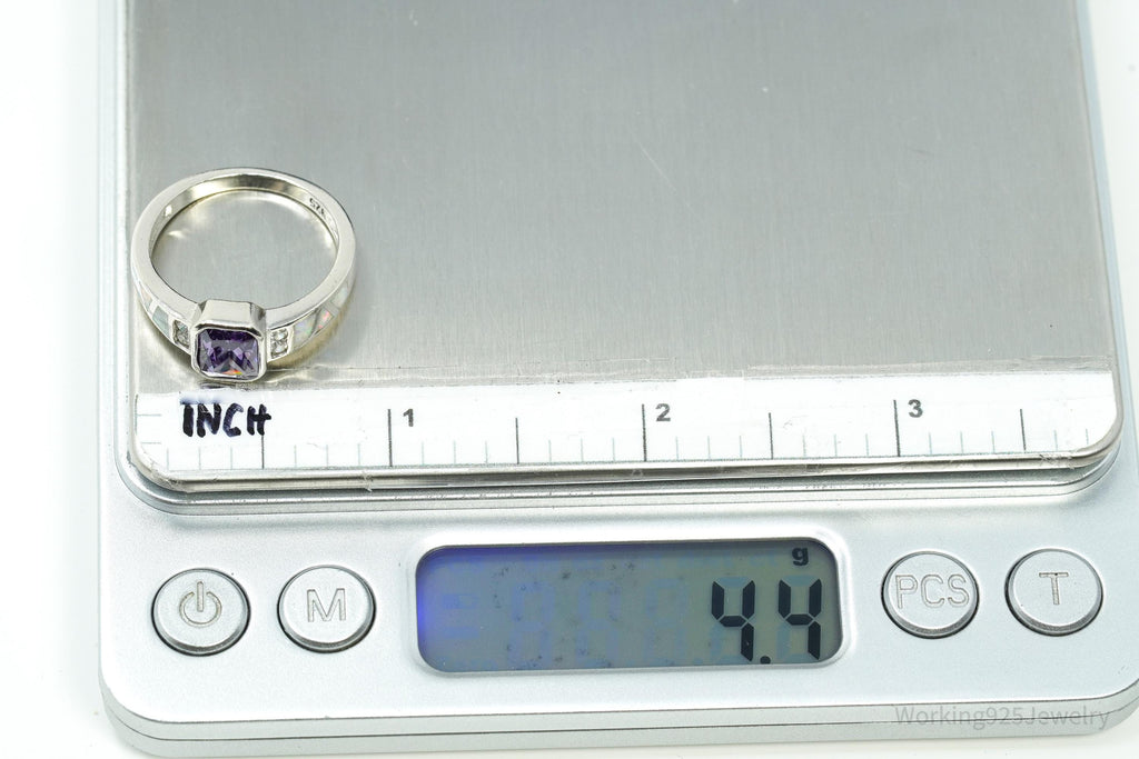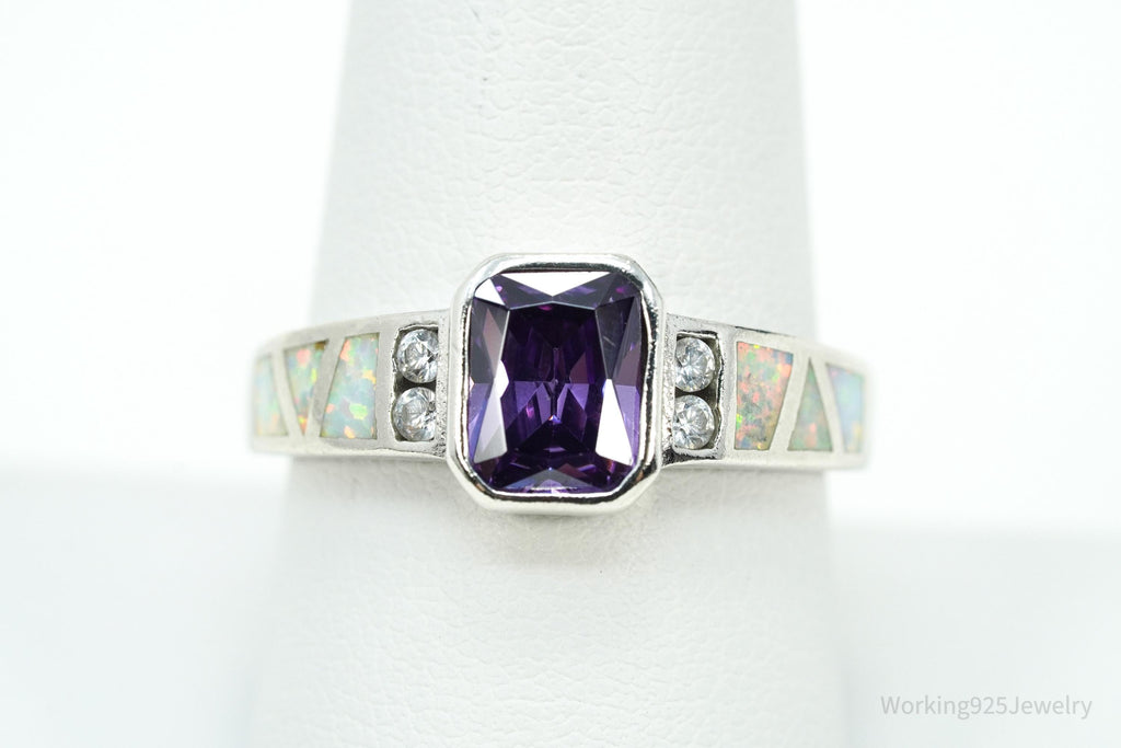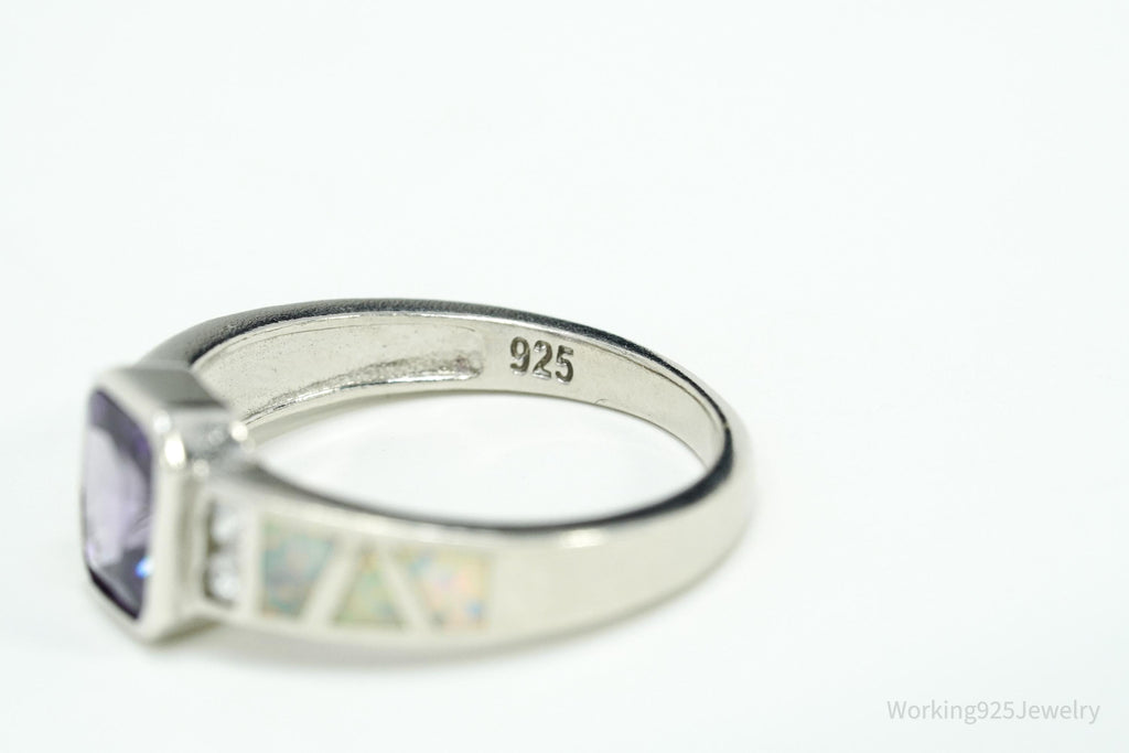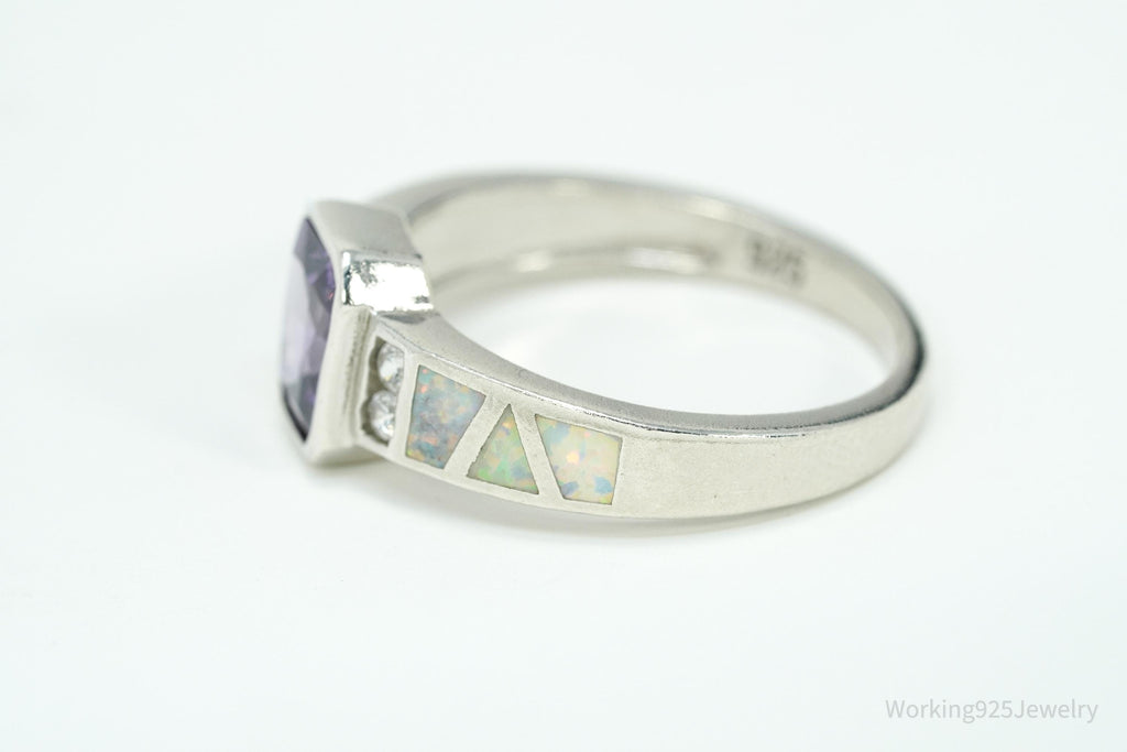 Vintage Amethyst Cubic Zirconia Opal Sterling Silver Ring - Size 8.75