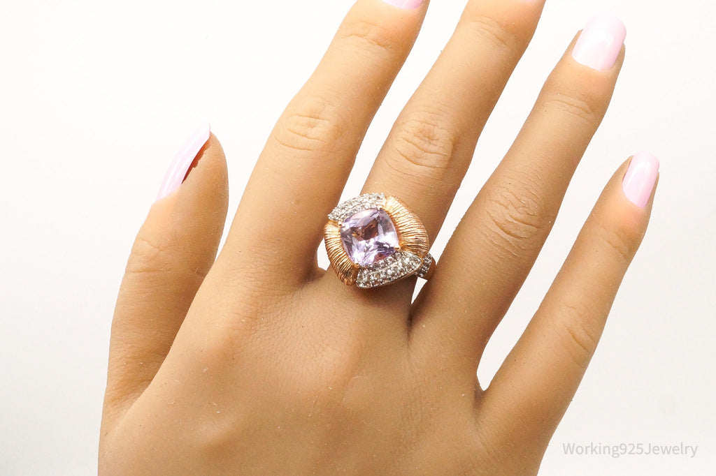 Vintage Amethyst Cubic Zirconia Rose Gold Vermeil Sterling Silver Ring SZ 9